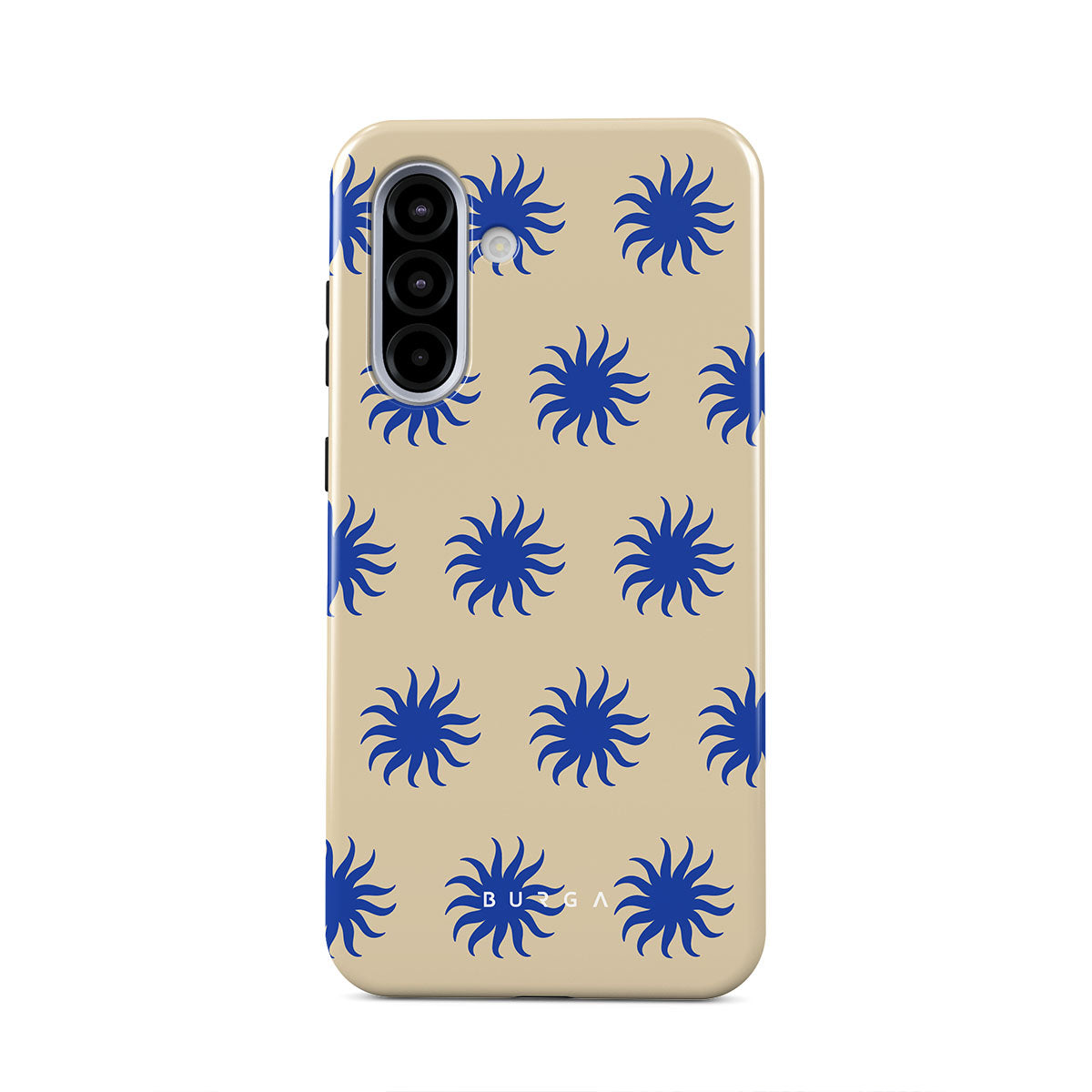 Immerse yourself in the vibrant spirit of the tropics with our La Playa Samsung Galaxy A56 5G phone case. This design boasts a warm, sandy beige base highlighted by striking blue motifs, reminiscent of the breezy Caribbean islands. It’s a stylish celebration of coastal beauty.