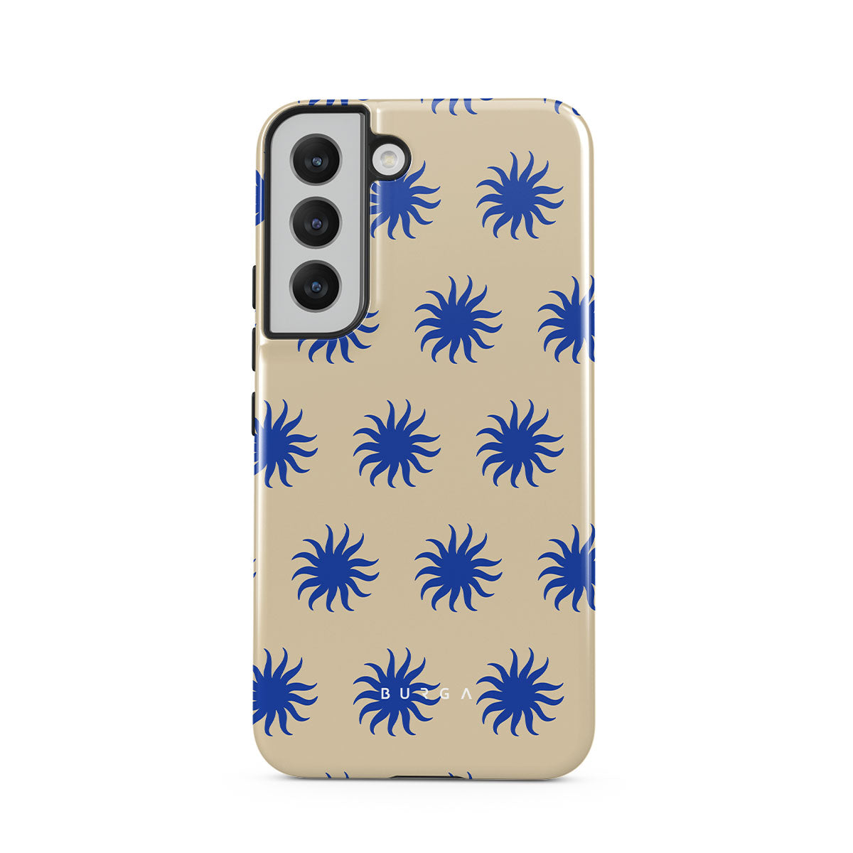 Immerse yourself in the vibrant spirit of the tropics with our La Playa Samsung Galaxy S22 phone case. This design boasts a warm, sandy beige base highlighted by striking blue motifs, reminiscent of the breezy Caribbean islands. It’s a stylish celebration of coastal beauty.