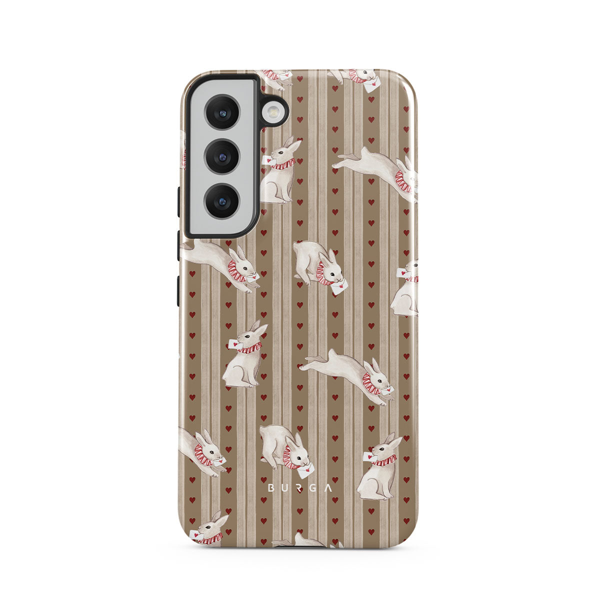The Late Again Samsung Galaxy S22 Plus phone case design is a love letter lost in time—scattered hearts, hurried notes, and white rabbits racing against a clock that refuses to be tamed. Sent, but never received. Read, but never answered. Always running, always chasing, always just a moment too late.