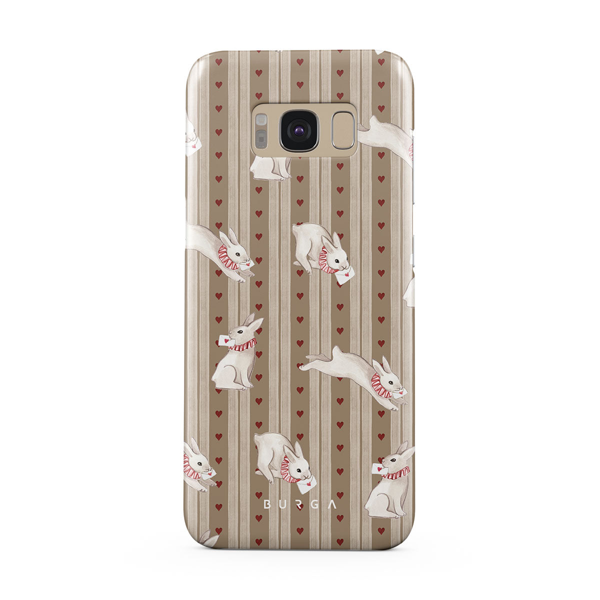 The Late Again Samsung Galaxy S8 phone case design is a love letter lost in time—scattered hearts, hurried notes, and white rabbits racing against a clock that refuses to be tamed. Sent, but never received. Read, but never answered. Always running, always chasing, always just a moment too late.