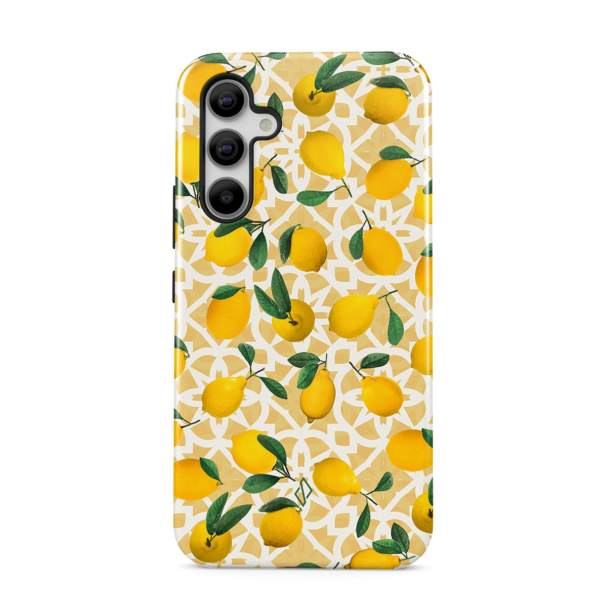 Freshly squeezed, freshly made – drops in water, in your tea, and the scent that gives the energy for the rest of the day. Feel that energy with our Lemon Juice Samsung Galaxy A55 phone case made with a bright yellow lemons pattern that catches the eye. Let your phone become an energy beacon for your day!