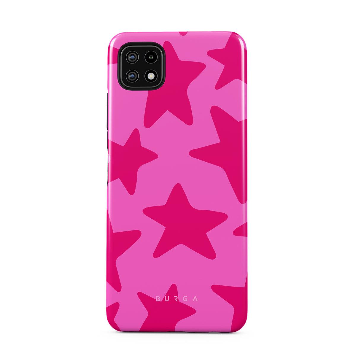 Indulge in a heavenly playground where stars engage in a captivating cosmic game of tag. Enjoy a celestial carnival and fashion fantasy dipped in a sugar-rush of pink. Live the Paradise City dream with our Let's Go Party Samsung Galaxy A22 5G phone case and flaunt your style.
