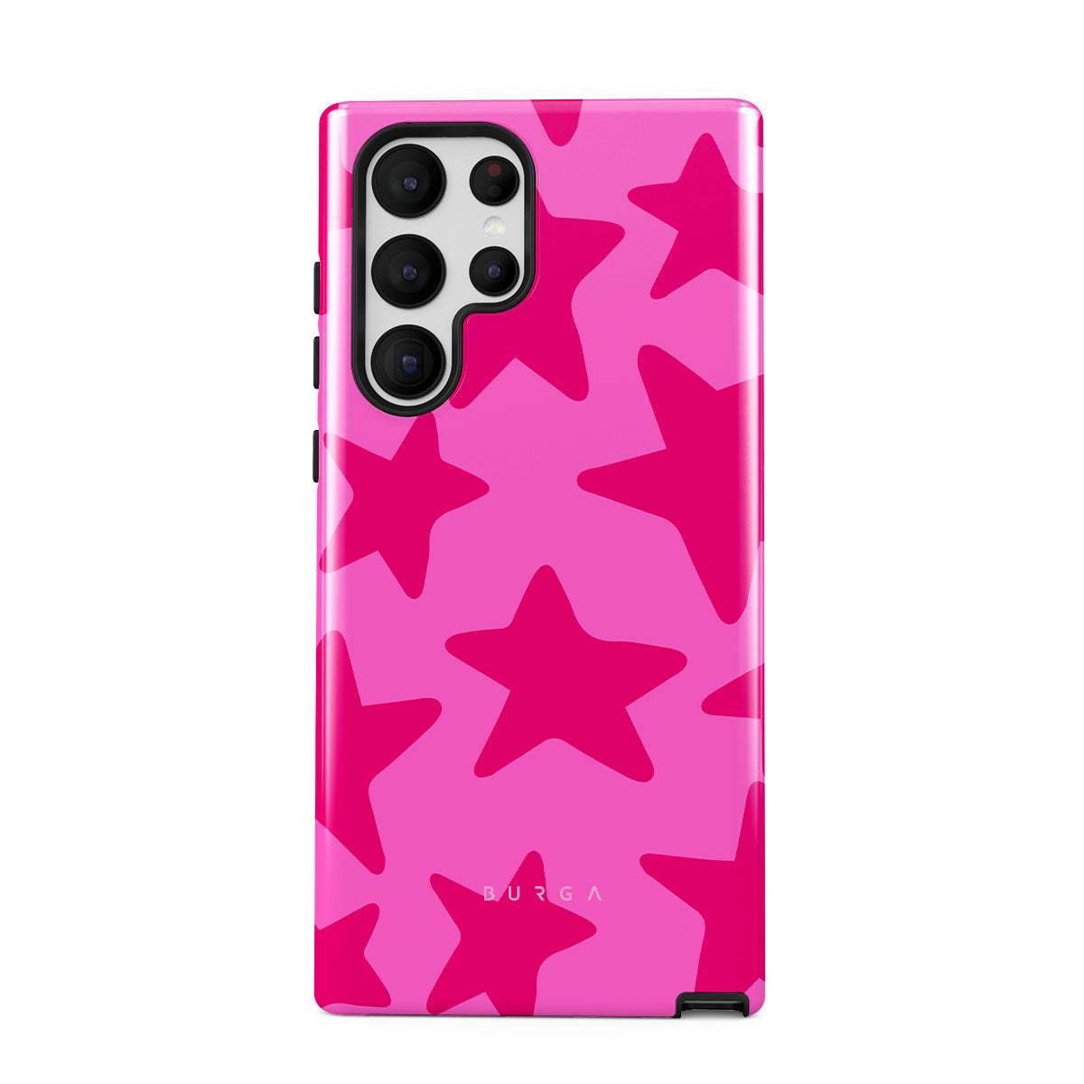 Indulge in a heavenly playground where stars engage in a captivating cosmic game of tag. Enjoy a celestial carnival and fashion fantasy dipped in a sugar-rush of pink. Live the Paradise City dream with our Let's Go Party Samsung Galaxy S22 Ultra phone case and flaunt your style.