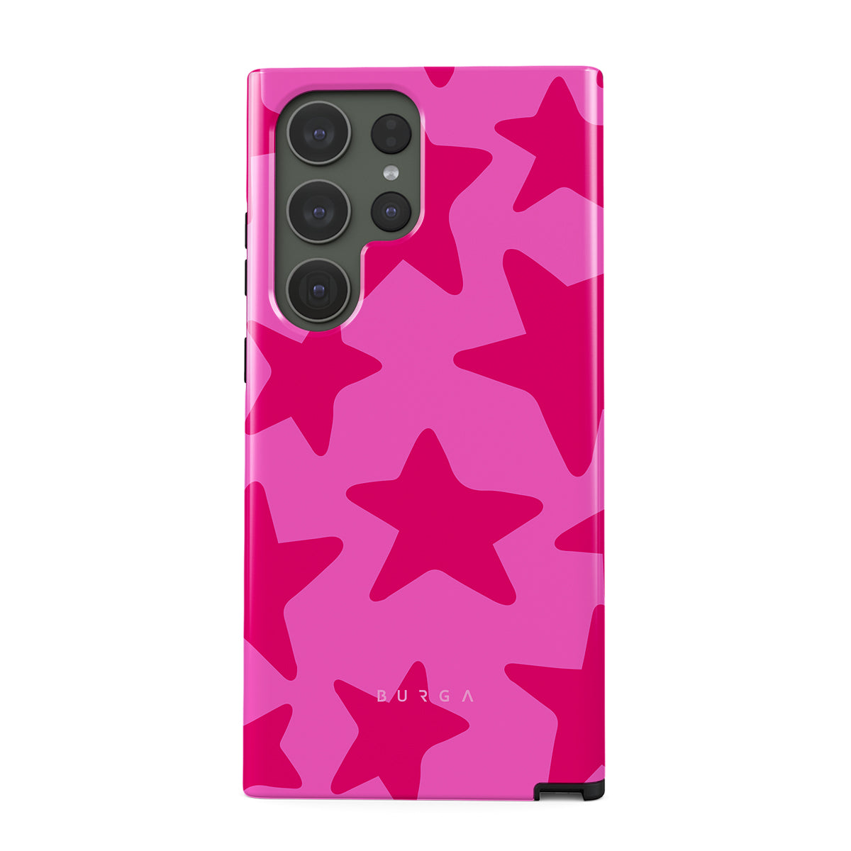 Indulge in a heavenly playground where stars engage in a captivating cosmic game of tag. Enjoy a celestial carnival and fashion fantasy dipped in a sugar-rush of pink. Live the Paradise City dream with our Let's Go Party Samsung Galaxy S23 Ultra phone case and flaunt your style.