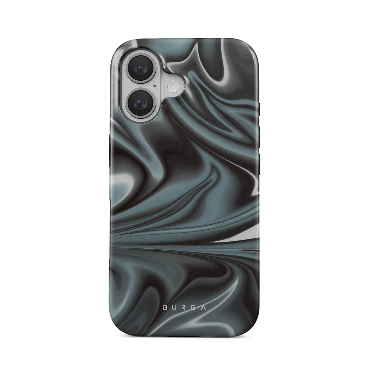 In our Lightning Strike design, black, blue, and white combine to create a daring iPhone 16 Plus phone case. The seamless blend of contrasting colors creates a paint-pour-like pattern and a little piece of art that will allow you to transform your phone into one too!