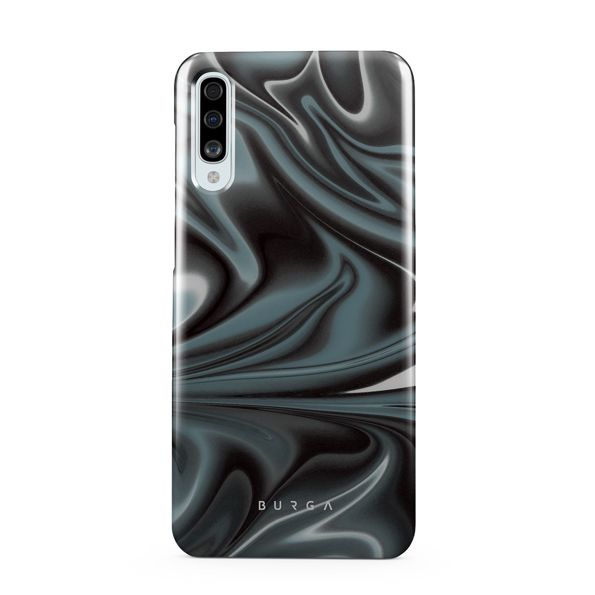 In our Lightning Strike design, black, blue, and white combine to create a daring Samsung Galaxy A50 phone case. The seamless blend of contrasting colors creates a paint-pour-like pattern and a little piece of art that will allow you to transform your phone into one too!