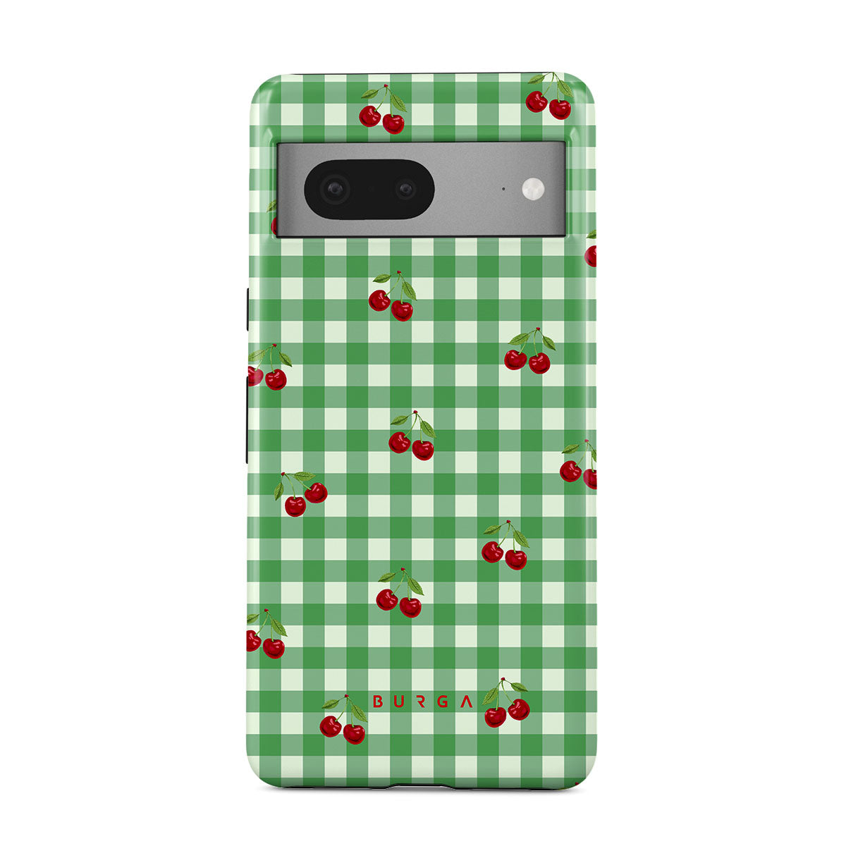 The Little Life Google Pixel 7a phone case design: green checks, simple and true, like a patch of grass under a tree, where you can sit and watch the small world go by, every leaf a chapter in nature’s story.