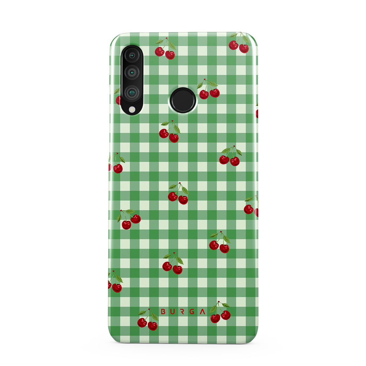 The Little Life Huawei P30 Lite phone case design: green checks, simple and true, like a patch of grass under a tree, where you can sit and watch the small world go by, every leaf a chapter in nature’s story.