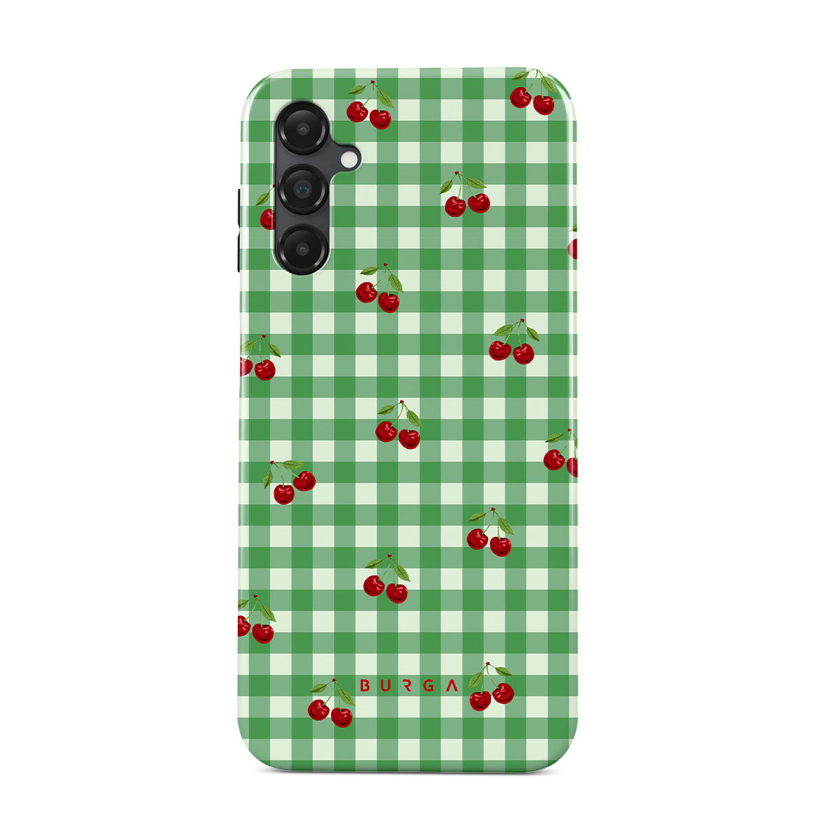 The Little Life Samsung Galaxy A25 phone case design: green checks, simple and true, like a patch of grass under a tree, where you can sit and watch the small world go by, every leaf a chapter in nature’s story.