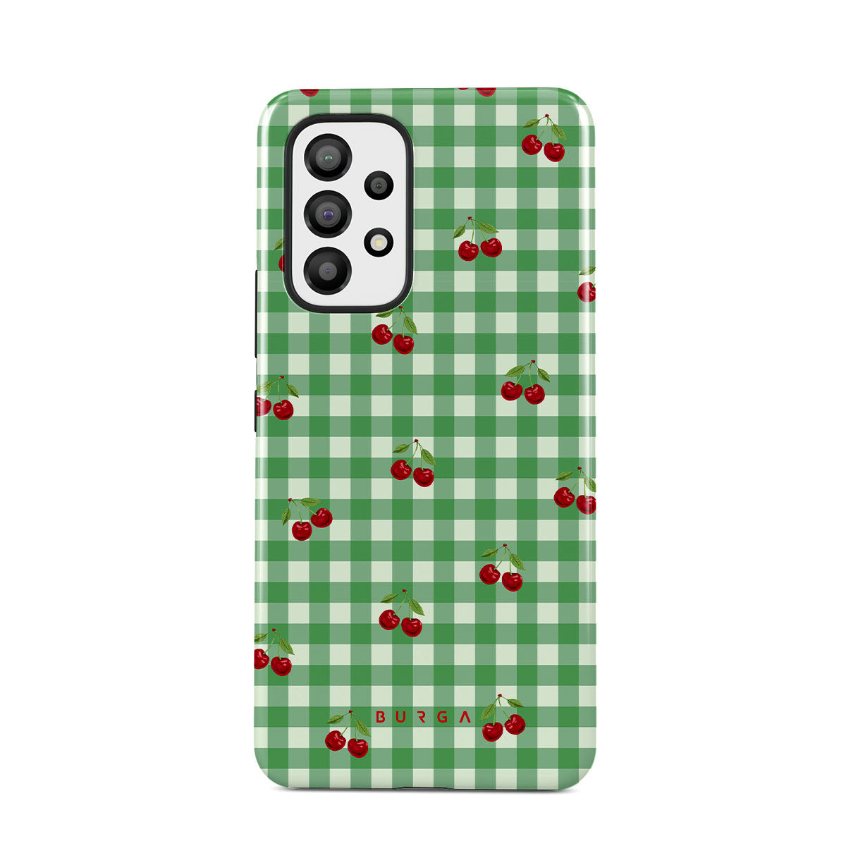 The Little Life Samsung Galaxy A53 phone case design: green checks, simple and true, like a patch of grass under a tree, where you can sit and watch the small world go by, every leaf a chapter in nature’s story.