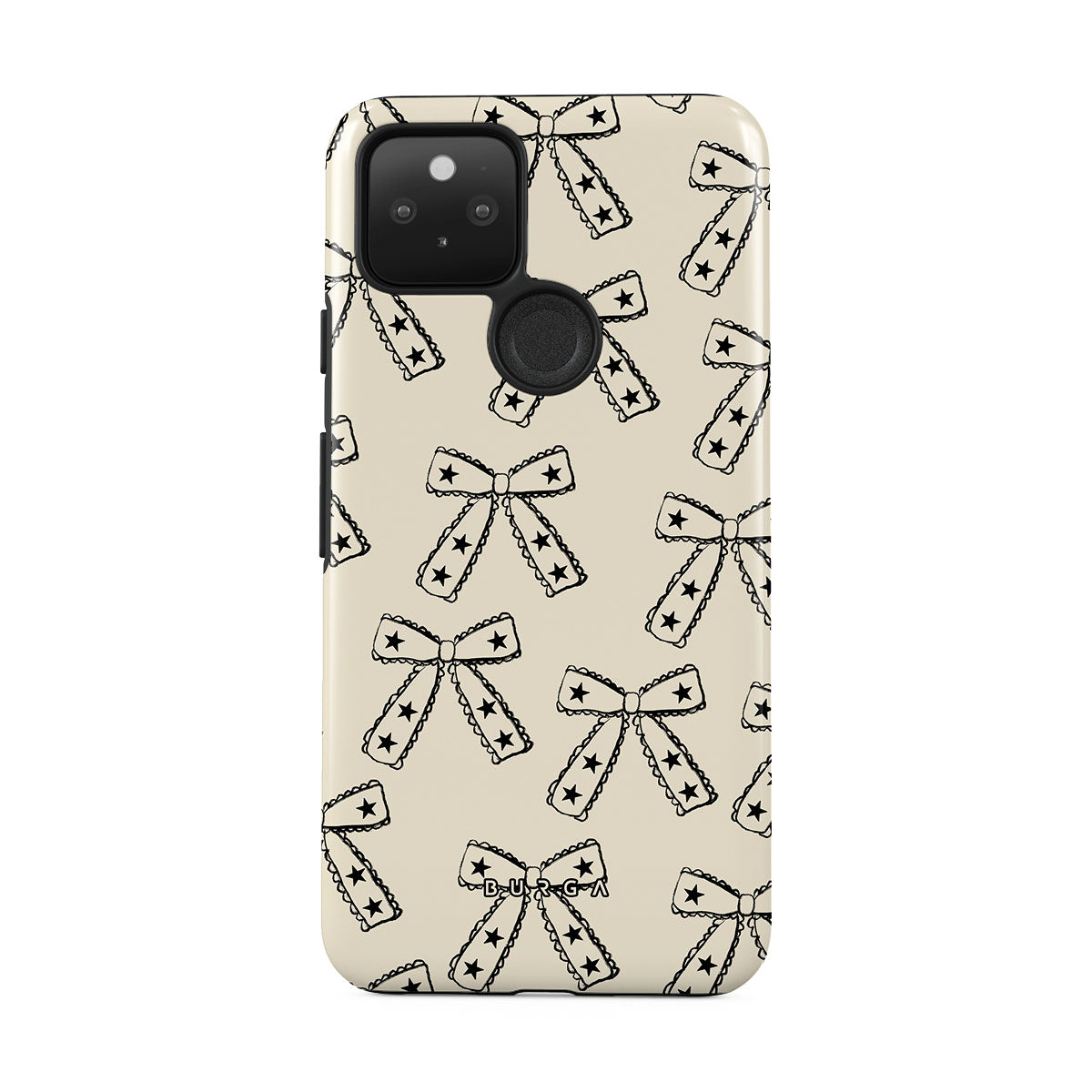 Shine on, Lone Star. Starry bows on a beige background bring a fun twist to your look. This Google Pixel 5 phone case design is ideal for those who march to the beat of their own drum and make their own fashion rules.