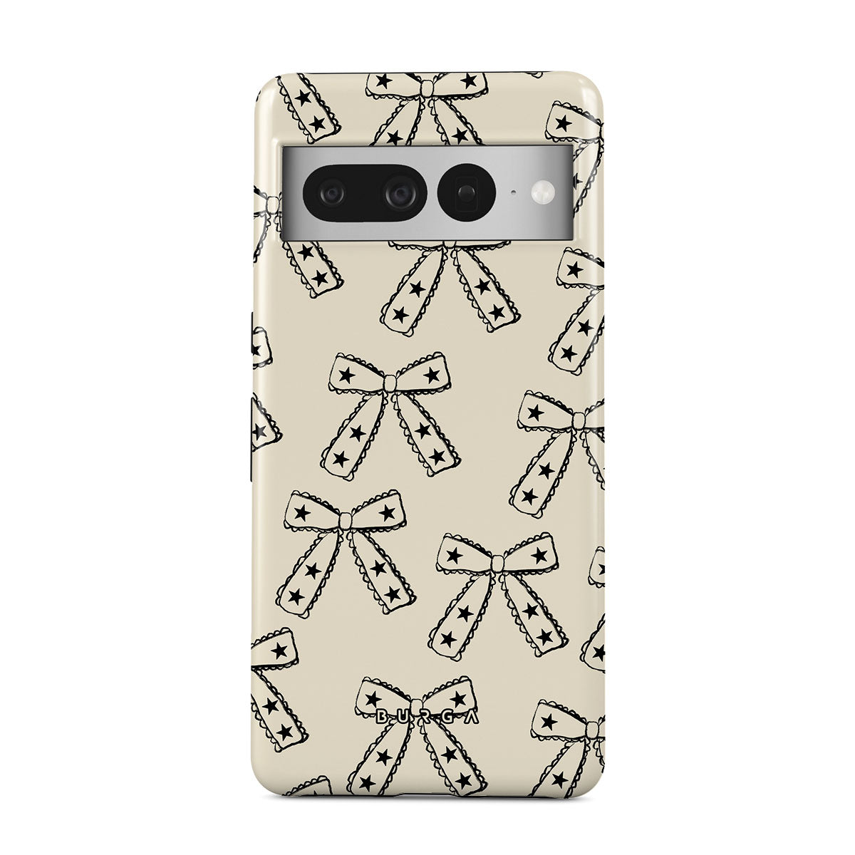 Shine on, Lone Star. Starry bows on a beige background bring a fun twist to your look. This Google Pixel 7 Pro phone case design is ideal for those who march to the beat of their own drum and make their own fashion rules.