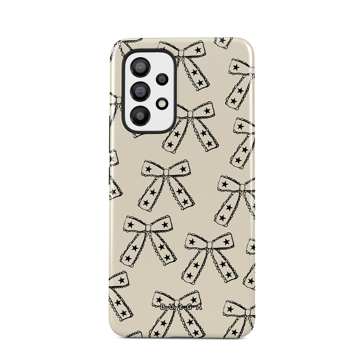 Shine on, Lone Star. Starry bows on a beige background bring a fun twist to your look. This Samsung Galaxy A53 phone case design is ideal for those who march to the beat of their own drum and make their own fashion rules.