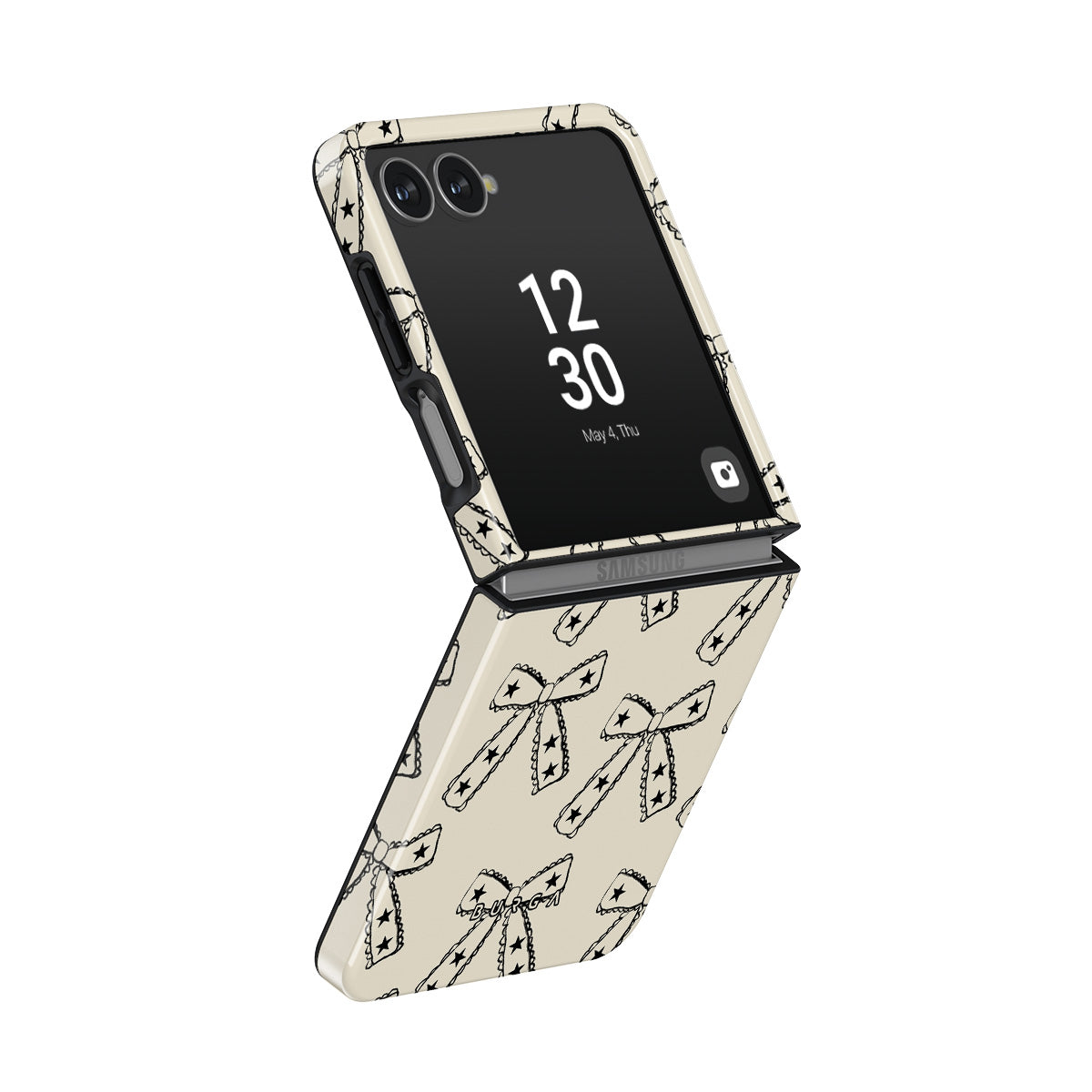 Shine on, Lone Star. Starry bows on a beige background bring a fun twist to your look. This Samsung Galaxy Z Flip 7 phone case design is ideal for those who march to the beat of their own drum and make their own fashion rules.