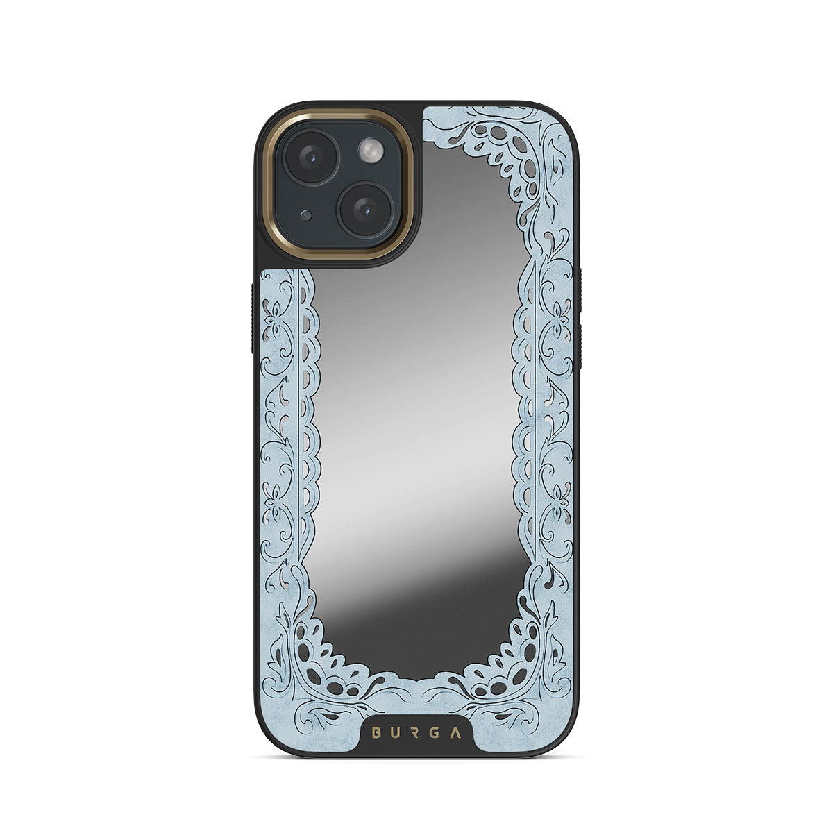 Peer into the Looking Glass iPhone 14 phone case design, and something peers back. A delicate blue frame, a mirror surface, and the quiet unease that maybe, just maybe, you're not the only one looking.