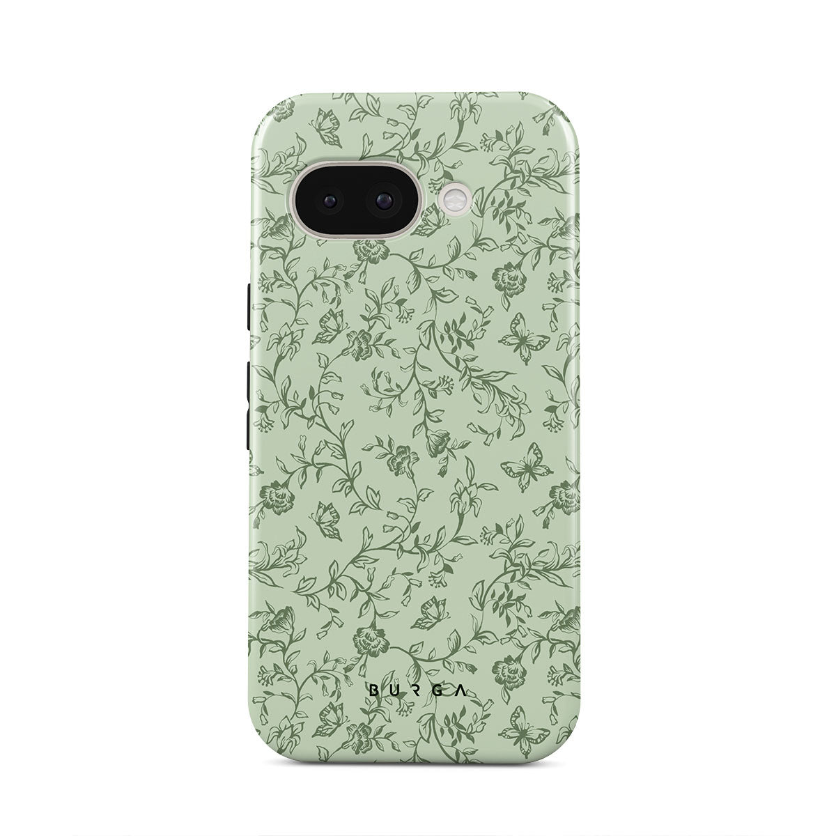 Soft green butterflies, delicate flowers, the kind of dream you wake up from but can’t quite shake. The Lost in Thought Google Pixel 9a phone case design lingers like a half-remembered story, floating just out of reach. Was it real? Or just another trick of Wonderland?