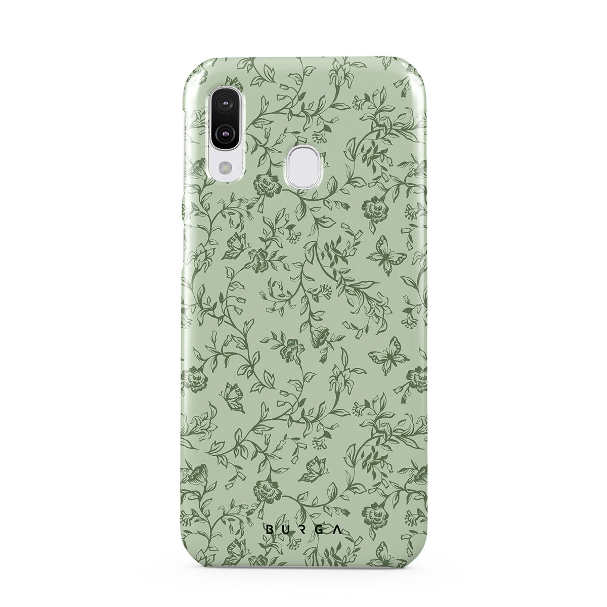 Soft green butterflies, delicate flowers, the kind of dream you wake up from but can’t quite shake. The Lost in Thought Samsung Galaxy A40 phone case design lingers like a half-remembered story, floating just out of reach. Was it real? Or just another trick of Wonderland?