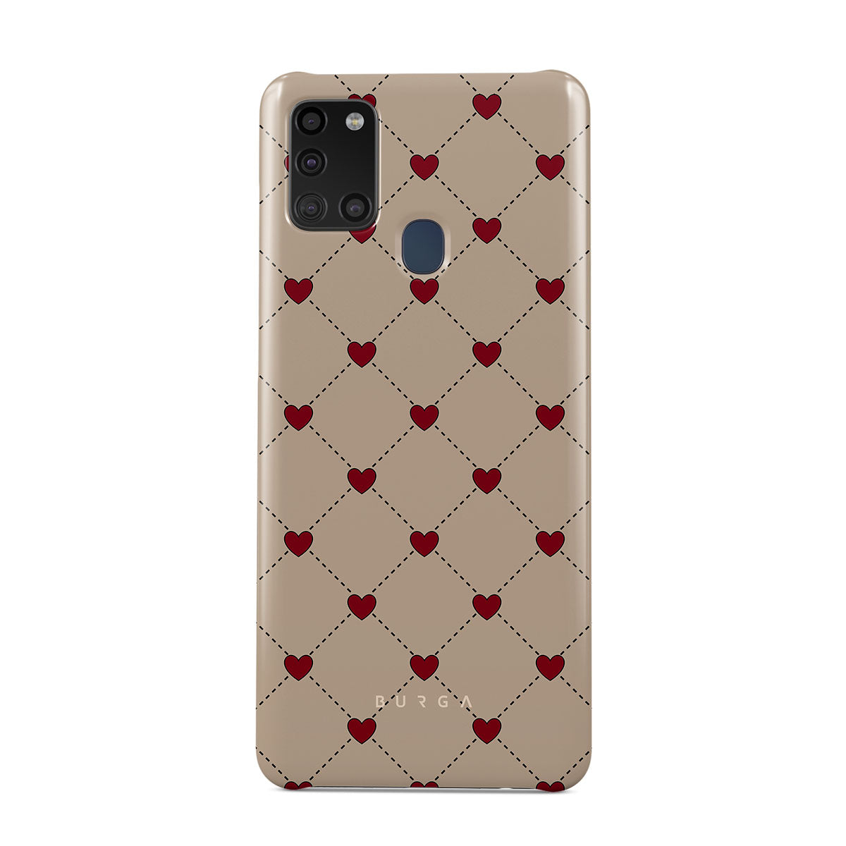Secrets of the heart whispered between elegant beige diamonds. Every moment, a red heart shimmers—a hidden message, a silent wish, a love letter to the beholder. Discover our Love Letter Samsung Galaxy A21s 4G Case phone case design.