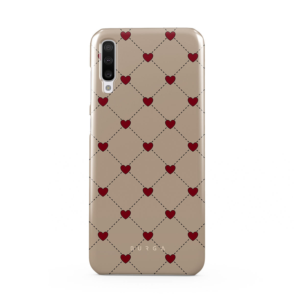 Secrets of the heart whispered between elegant beige diamonds. Every moment, a red heart shimmers—a hidden message, a silent wish, a love letter to the beholder. Discover our Love Letter Samsung Galaxy A70 Case phone case design.