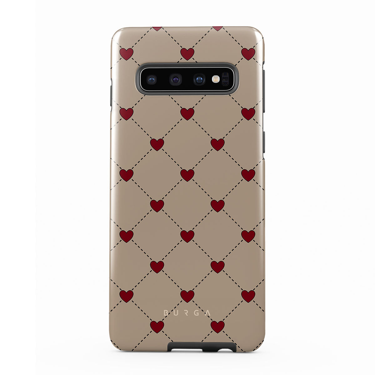 Secrets of the heart whispered between elegant beige diamonds. Every moment, a red heart shimmers—a hidden message, a silent wish, a love letter to the beholder. Discover our Love Letter Samsung Galaxy S10 4G Case phone case design.