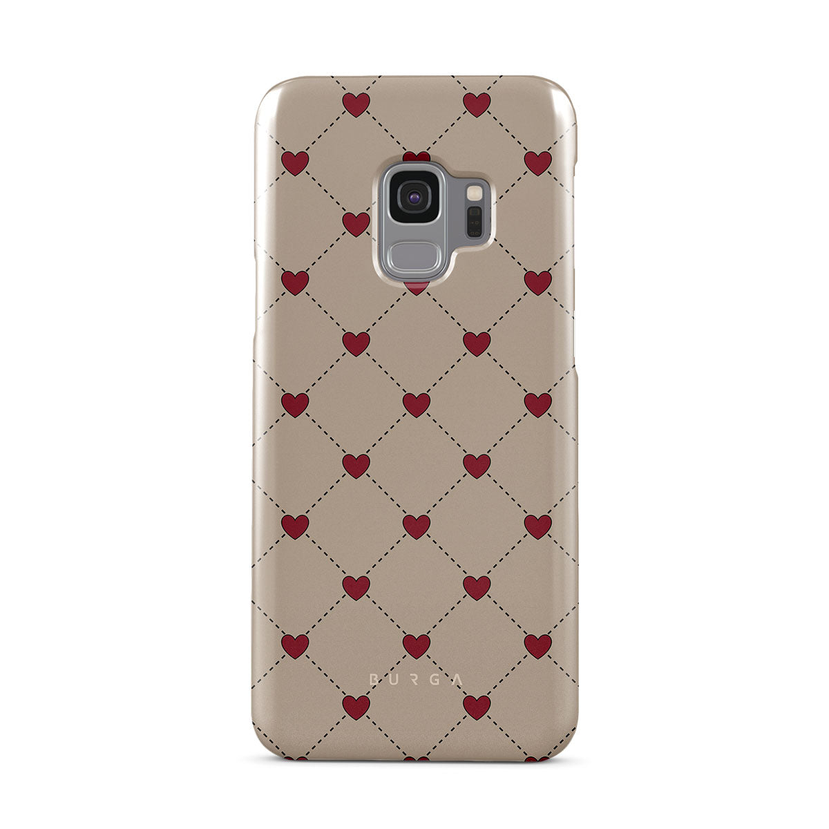 Secrets of the heart whispered between elegant beige diamonds. Every moment, a red heart shimmers—a hidden message, a silent wish, a love letter to the beholder. Discover our Love Letter Samsung Galaxy S9 Case phone case design.