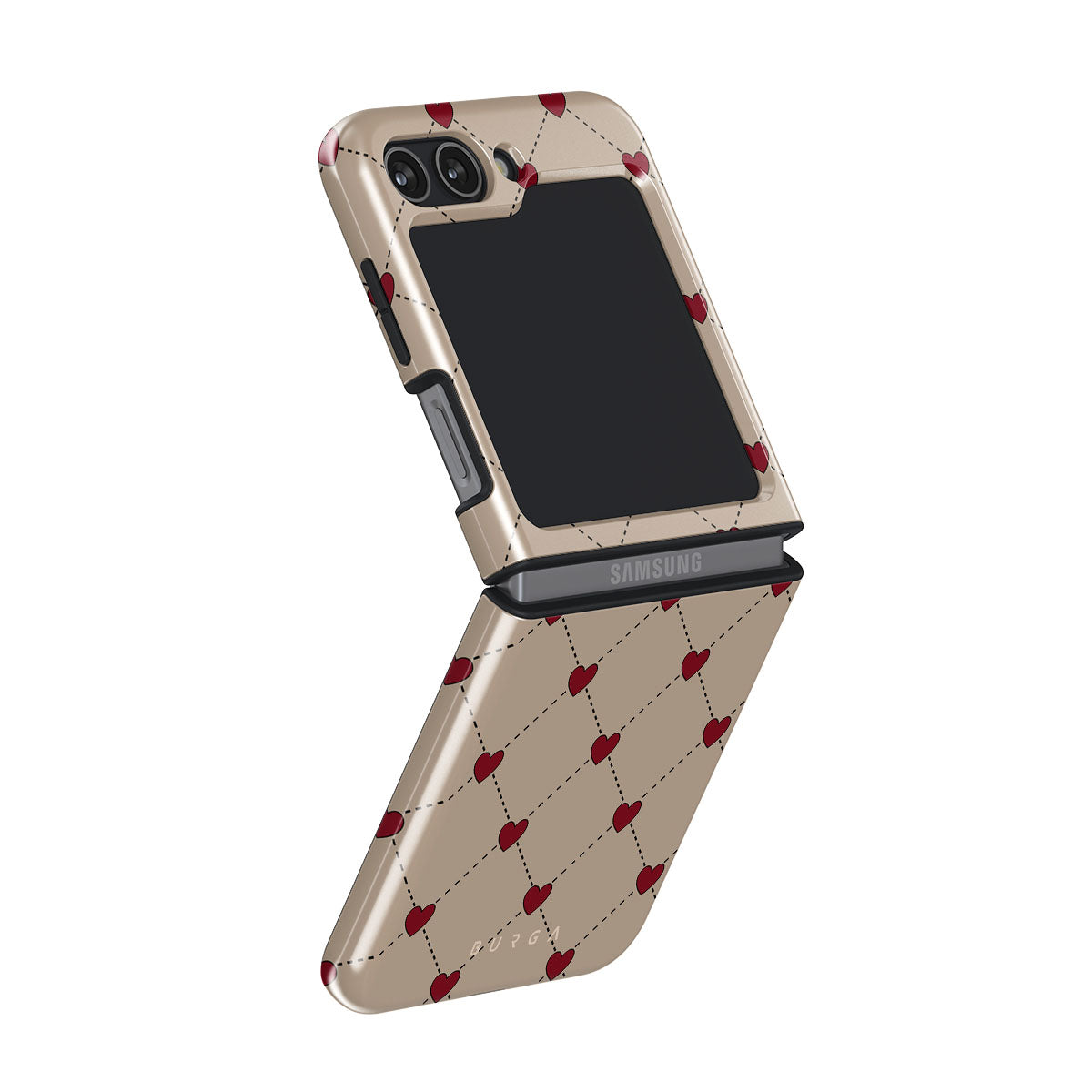 Secrets of the heart whispered between elegant beige diamonds. Every moment, a red heart shimmers—a hidden message, a silent wish, a love letter to the beholder. Discover our Love Letter Samsung Galaxy Z Flip 5 Case phone case design.
