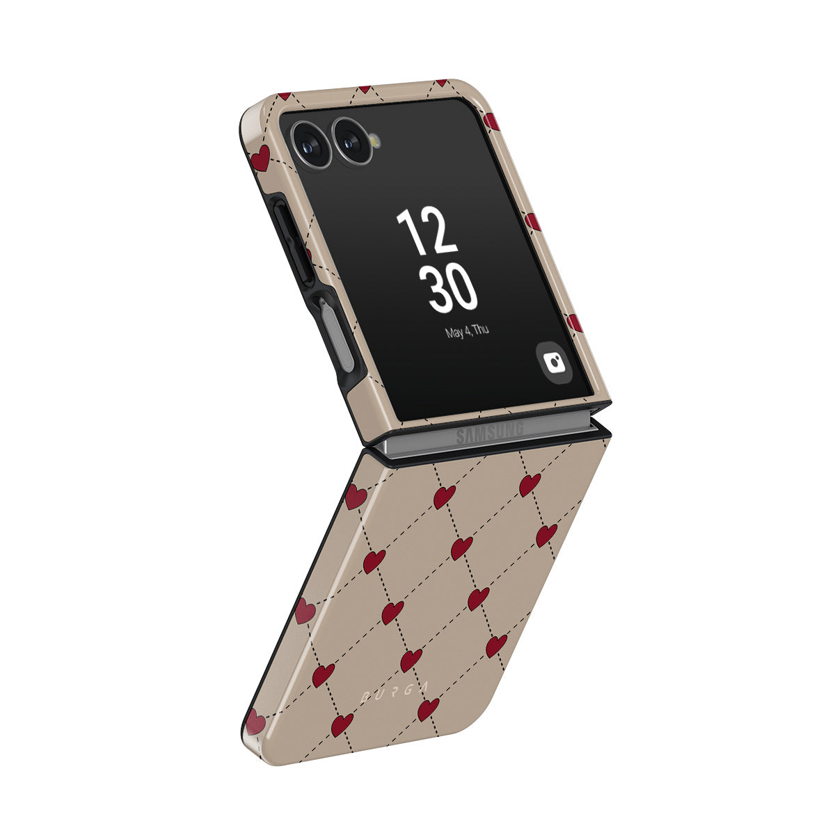 Secrets of the heart whispered between elegant beige diamonds. Every moment, a red heart shimmers—a hidden message, a silent wish, a love letter to the beholder. Discover our Love Letter Samsung Galaxy Z Flip 7 Case phone case design.