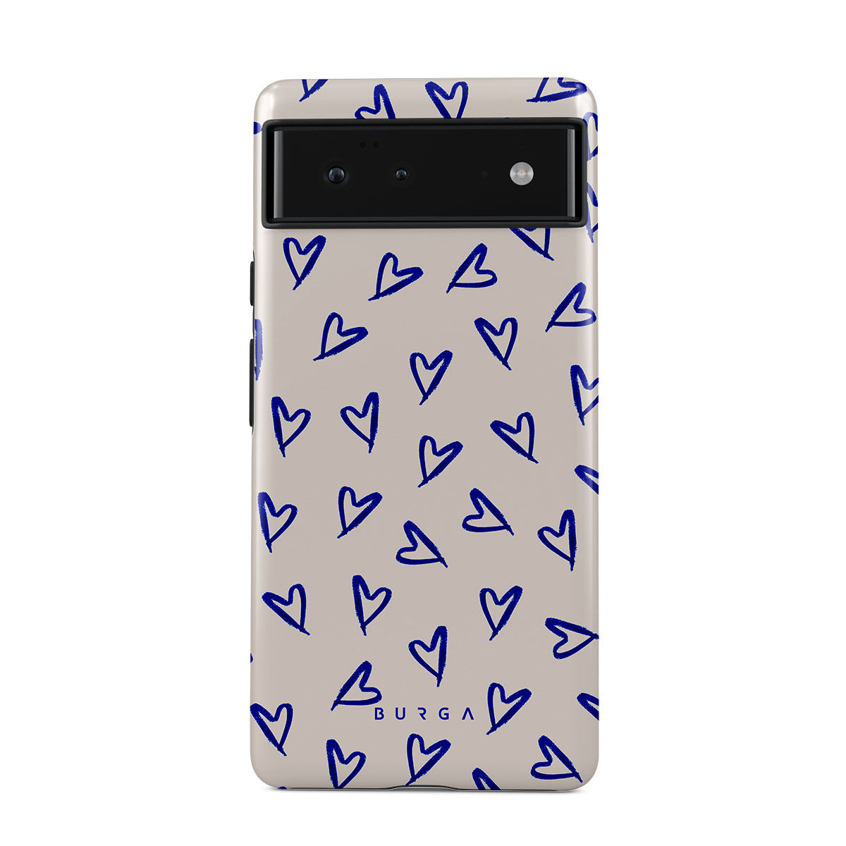Let your Google Pixel 6a phone case be the declaration of passion it deserves with the charming Love Me Right design. The soft powder pink background and playful blue hearts create a whimsical and endearing look, making this case the perfect way to show off your loving yet cheeky side.