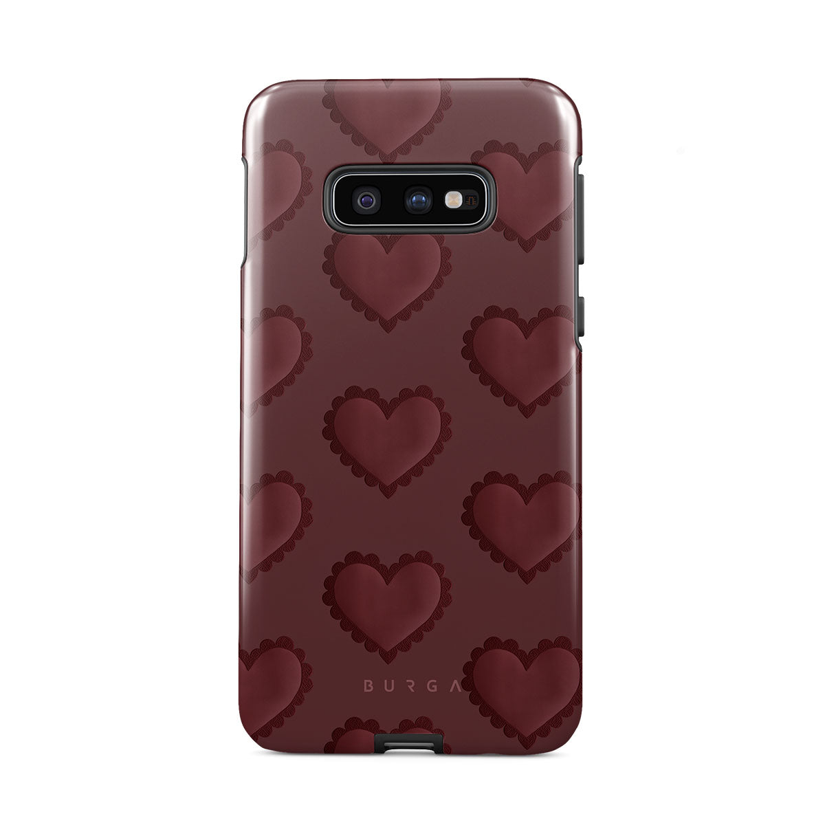 This Samsung Galaxy S10E phone case design is a bold declaration for those addicted to the rush of love. Deep red hearts stitched like scars of passion, Loveholic wears its emotions on its sleeve. It’s messy, intense, and intoxicating—a celebration of those who live for the thrill of surrendering completely to what sets their soul on fire.