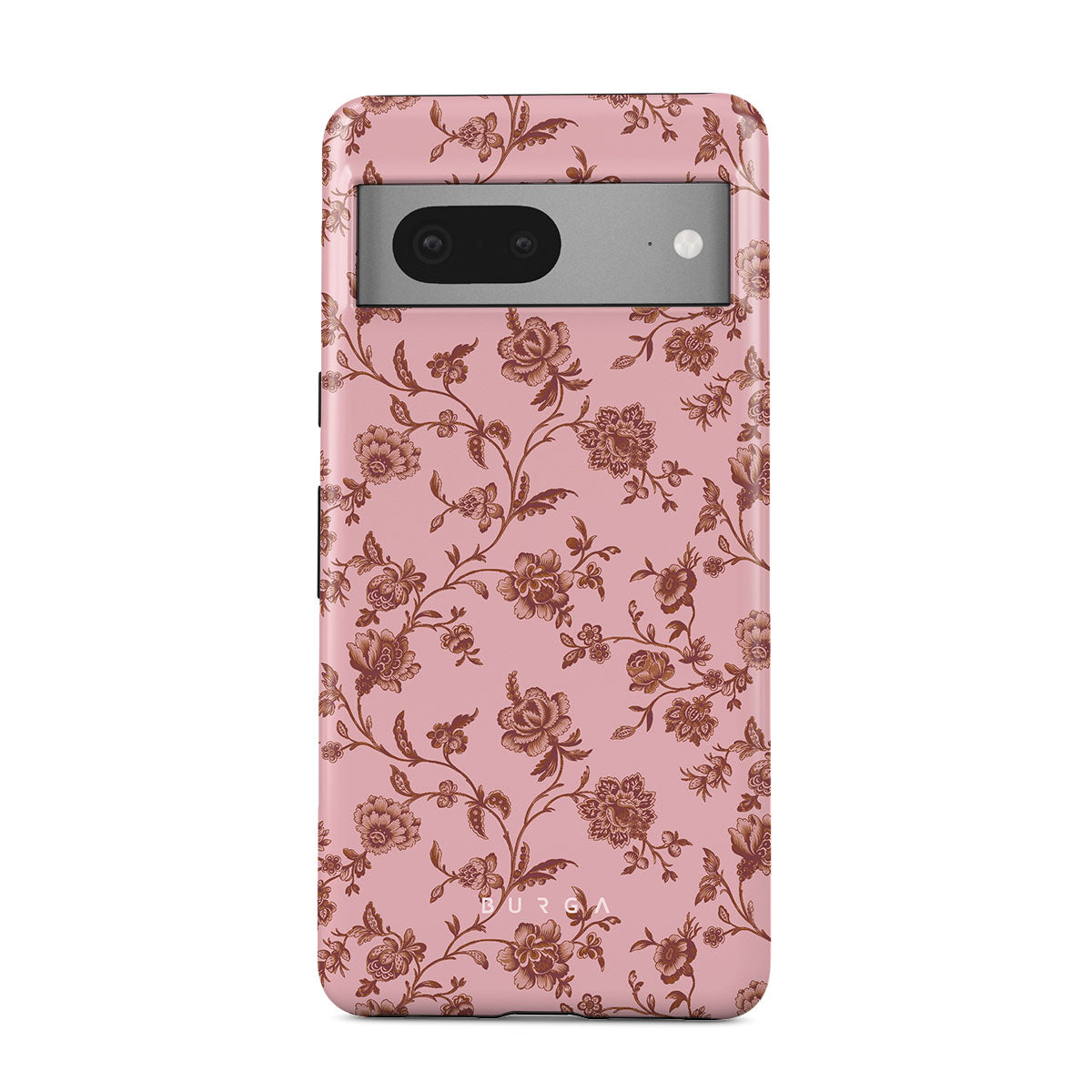 The Lover Google Pixel 7 phone case design: because you're a Lover, not a fighter. Delicate floral motifs across a soft pink background capture the essence of timeless beauty and rustic elegance. Perfect for modern-day cowgirls with a vintage heart.