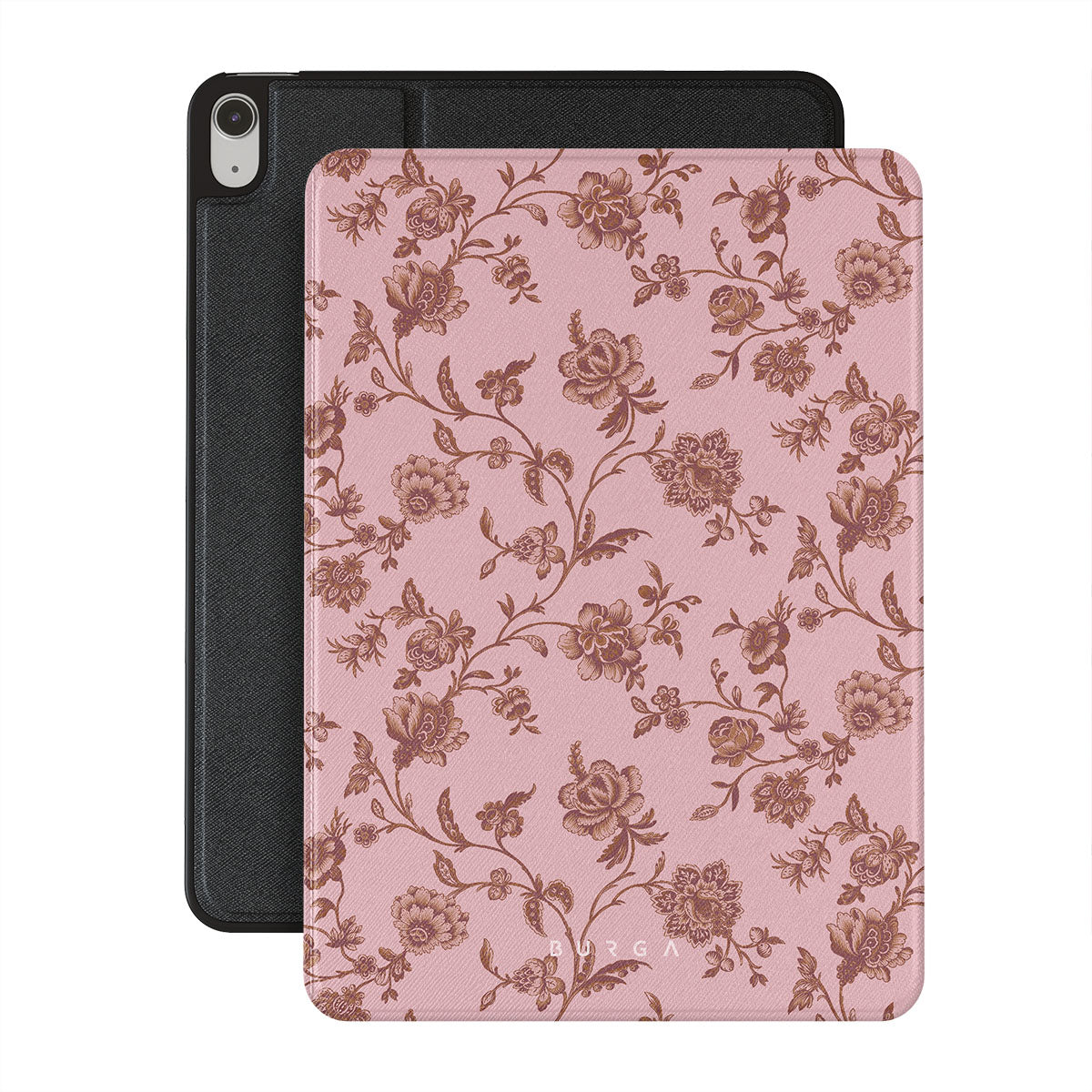 The Lover iPad Air 11 (7th/6th Gen) folio case design: because you're a Lover, not a fighter. Delicate floral motifs across a soft pink background capture the essence of timeless beauty and rustic elegance. Perfect for modern-day cowgirls with a vintage heart.