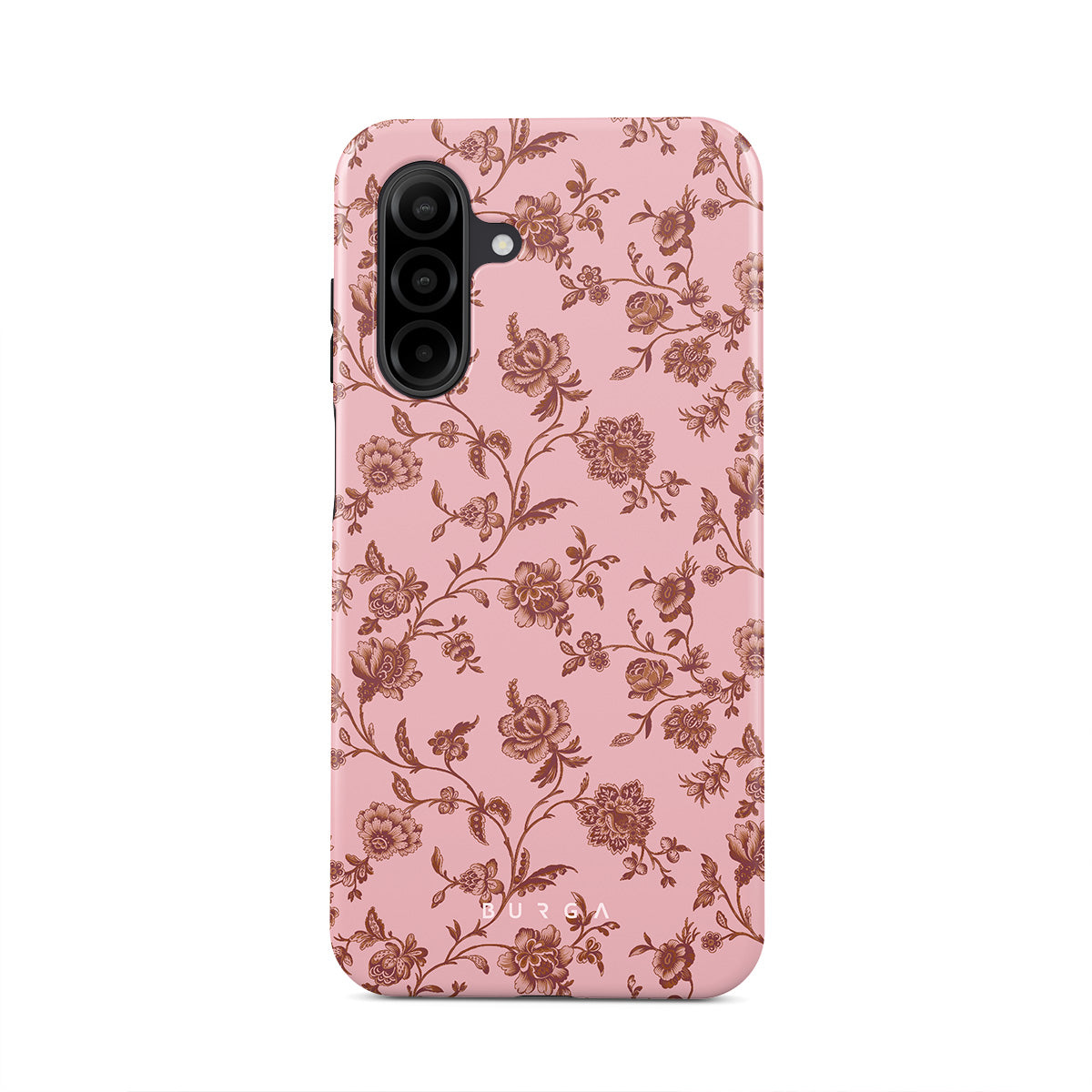 The Lover Samsung Galaxy A26 5G phone case design: because you're a Lover, not a fighter. Delicate floral motifs across a soft pink background capture the essence of timeless beauty and rustic elegance. Perfect for modern-day cowgirls with a vintage heart.