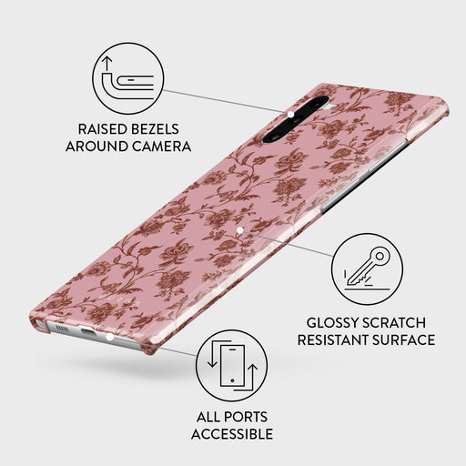The Lover Samsung Galaxy Note 10 phone case design: because you're a Lover, not a fighter. Delicate floral motifs across a soft pink background capture the essence of timeless beauty and rustic elegance. Perfect for modern-day cowgirls with a vintage heart.