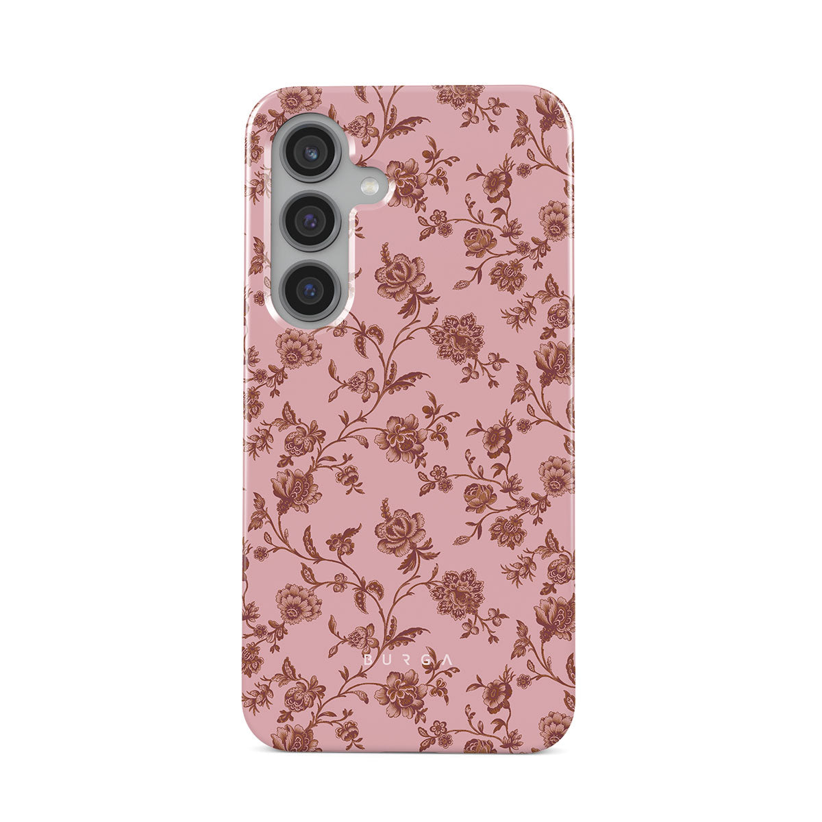 The Lover Samsung Galaxy S24 phone case design: because you're a Lover, not a fighter. Delicate floral motifs across a soft pink background capture the essence of timeless beauty and rustic elegance. Perfect for modern-day cowgirls with a vintage heart.