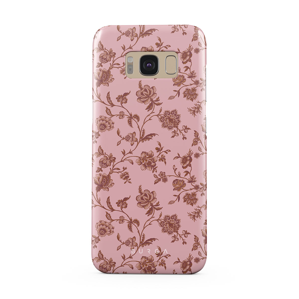 The Lover Samsung Galaxy S8 phone case design: because you're a Lover, not a fighter. Delicate floral motifs across a soft pink background capture the essence of timeless beauty and rustic elegance. Perfect for modern-day cowgirls with a vintage heart.