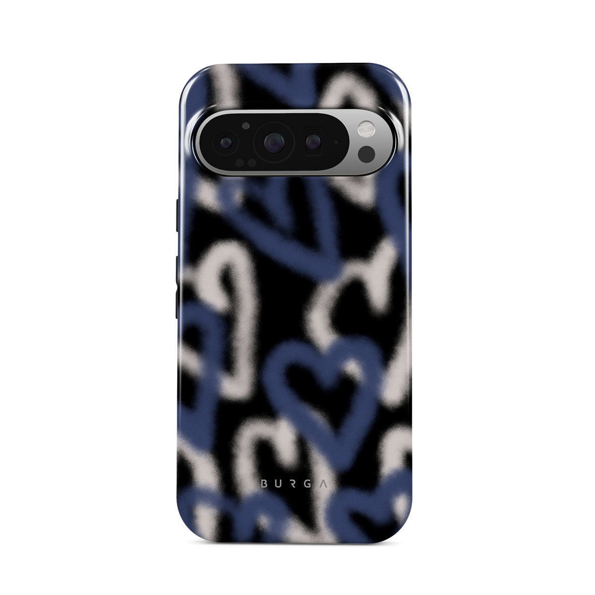 The Lucky You Google Pixel 9 Pro phone case captures the raw, unfiltered pulse of street art. Graffiti hearts in striking blue and white stand out against a black background, their edges softly faded. It’s a design that speaks to the restless who find beauty in chaos and dare to be different.