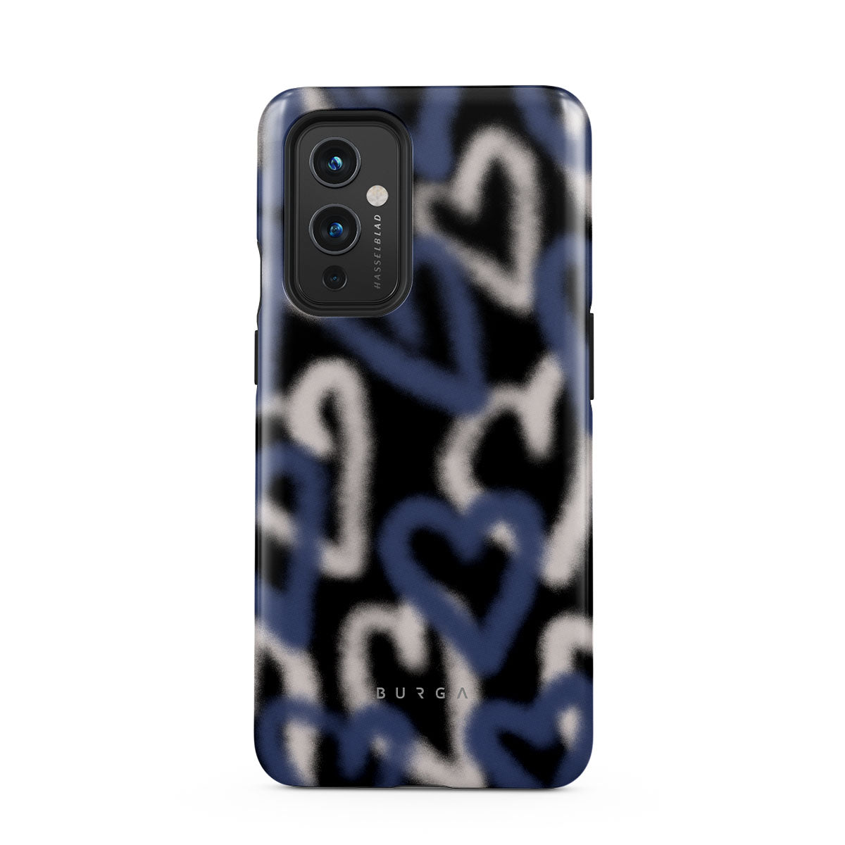The Lucky You OnePlus 9 phone case captures the raw, unfiltered pulse of street art. Graffiti hearts in striking blue and white stand out against a black background, their edges softly faded. It’s a design that speaks to the restless who find beauty in chaos and dare to be different.
