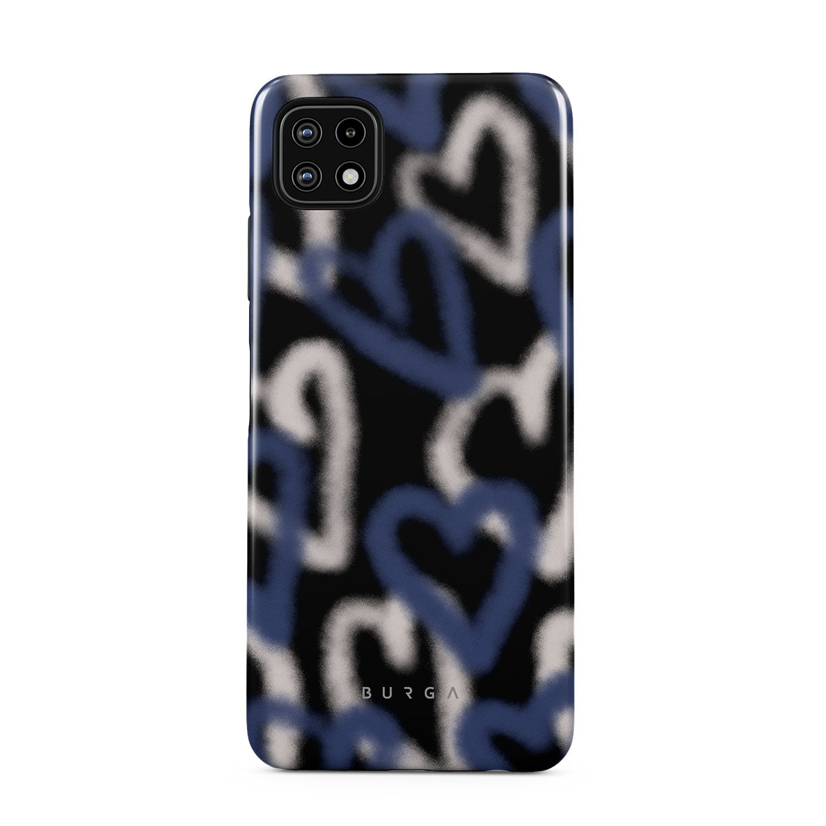 The Lucky You Samsung Galaxy A22 5G phone case captures the raw, unfiltered pulse of street art. Graffiti hearts in striking blue and white stand out against a black background, their edges softly faded. It’s a design that speaks to the restless who find beauty in chaos and dare to be different.