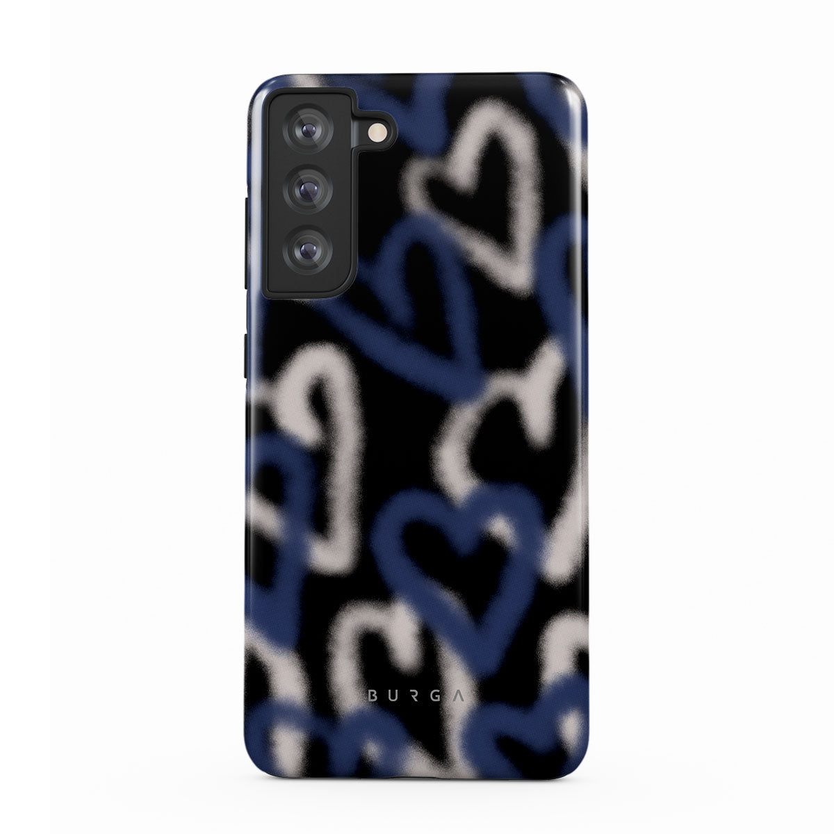 The Lucky You Samsung Galaxy S21 FE phone case captures the raw, unfiltered pulse of street art. Graffiti hearts in striking blue and white stand out against a black background, their edges softly faded. It’s a design that speaks to the restless who find beauty in chaos and dare to be different.