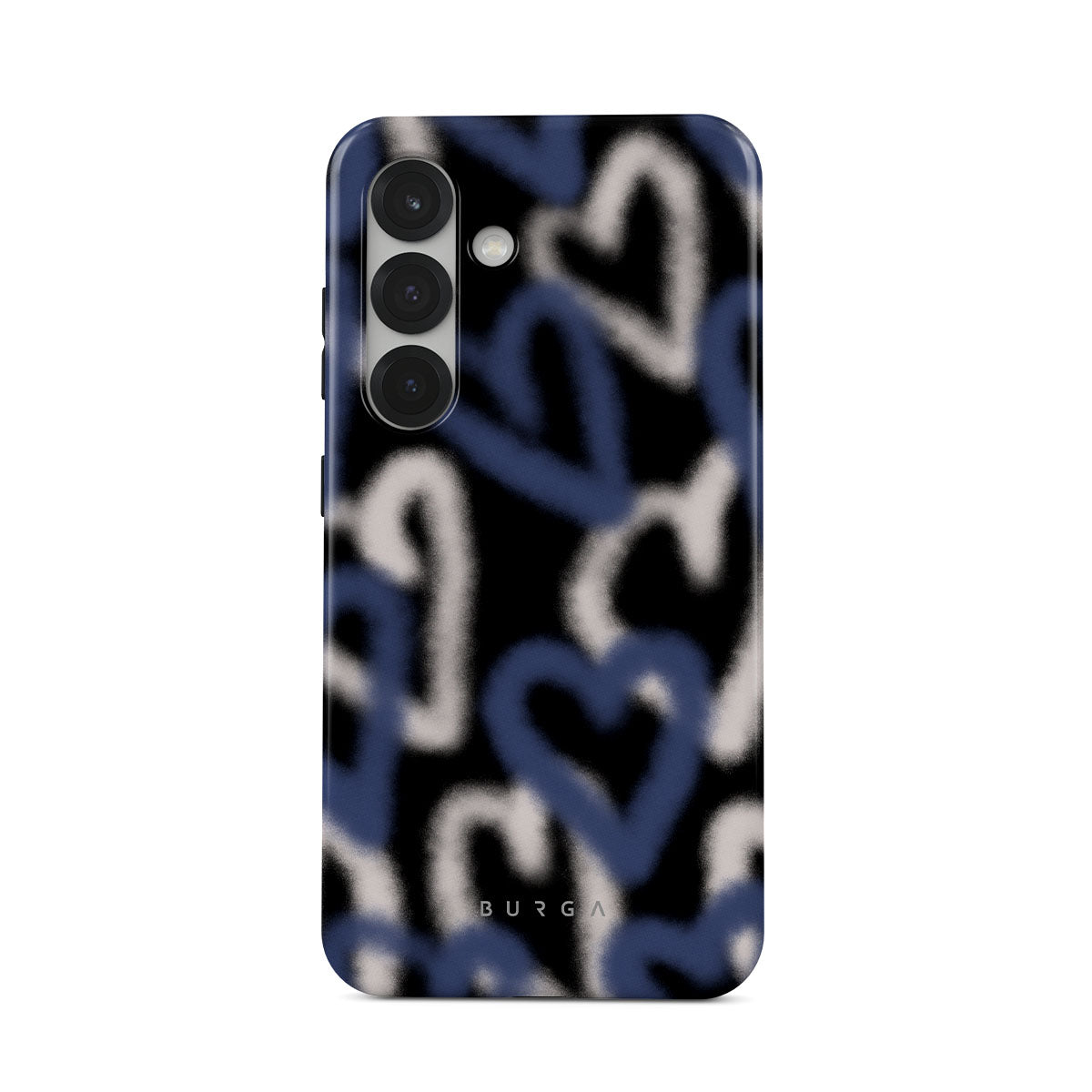 The Lucky You Samsung Galaxy S25 Plus phone case captures the raw, unfiltered pulse of street art. Graffiti hearts in striking blue and white stand out against a black background, their edges softly faded. It’s a design that speaks to the restless who find beauty in chaos and dare to be different.
