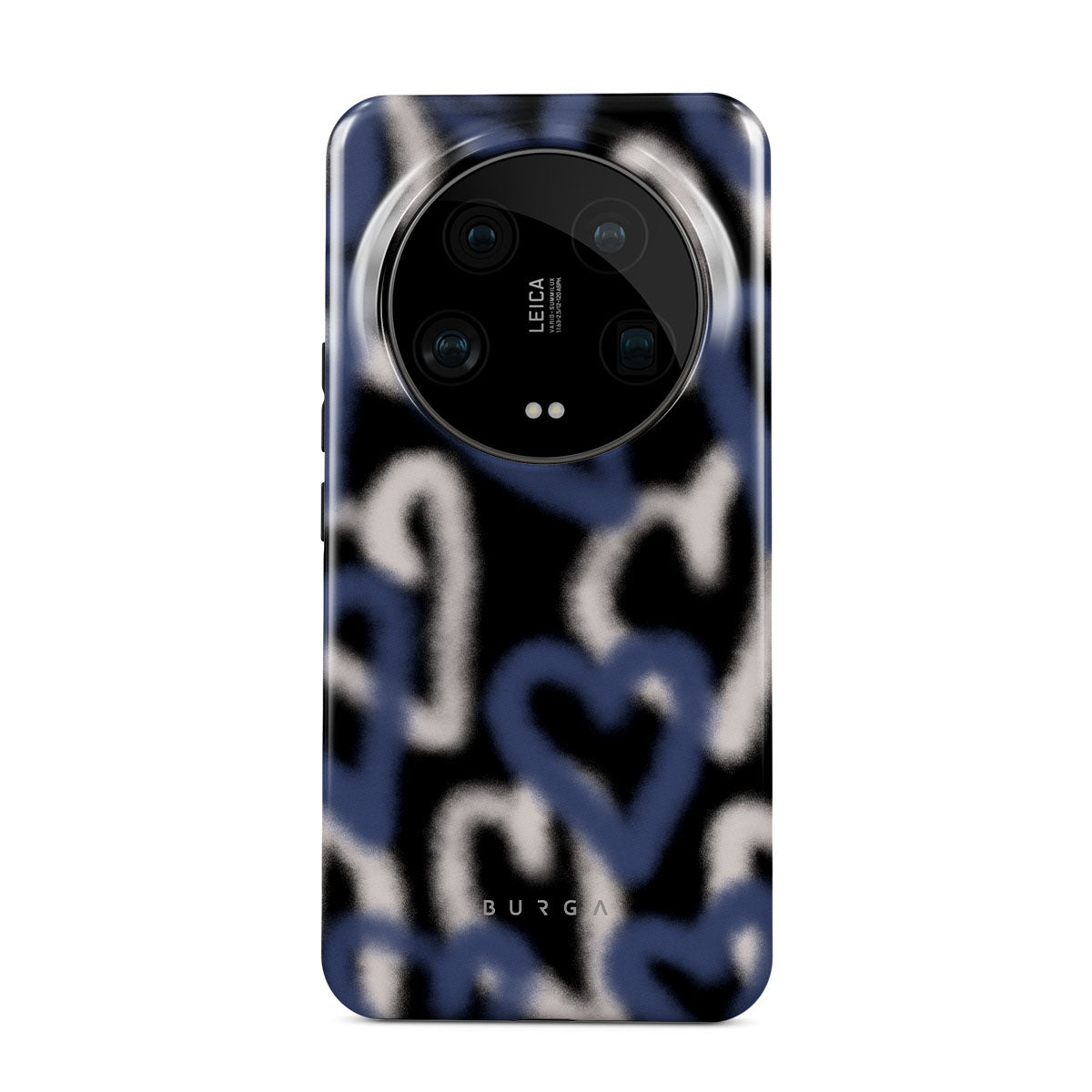 The Lucky You Xiaomi 14 Ultra phone case captures the raw, unfiltered pulse of street art. Graffiti hearts in striking blue and white stand out against a black background, their edges softly faded. It’s a design that speaks to the restless who find beauty in chaos and dare to be different.