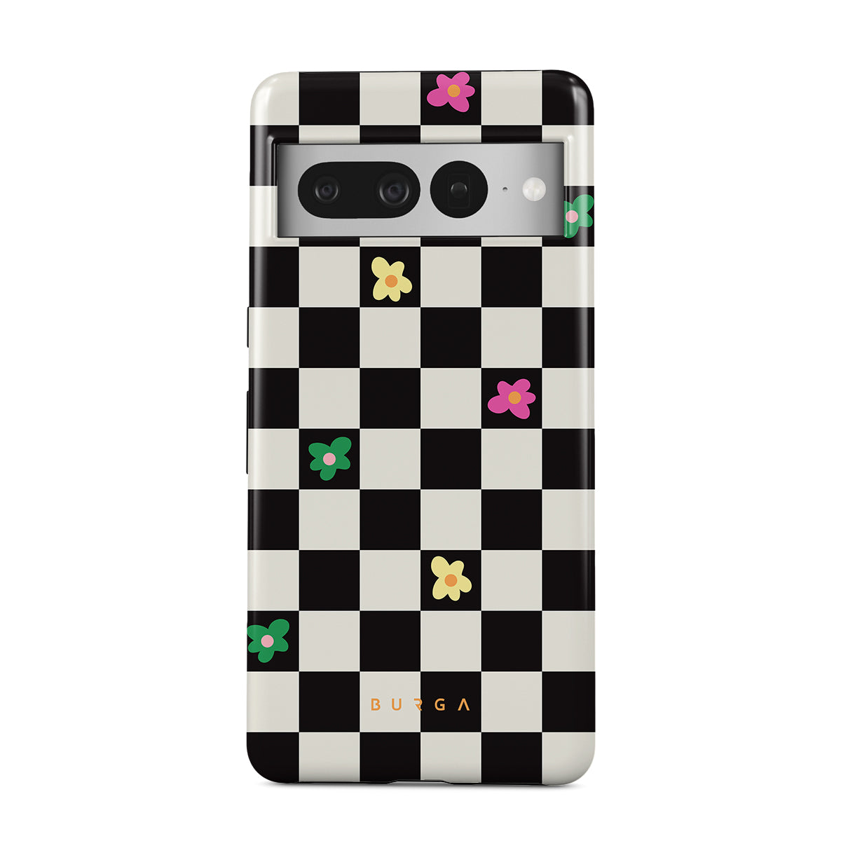 Take time to relax with our Lunch Break - Google Pixel 7 Pro phone case. The playful addition of colorful retro flowers to the classical black and white checkered pattern will add that extra pop of color. It will bring that much-needed *oomph* to your phone. With this playful design, you can keep your phone cute and protected!