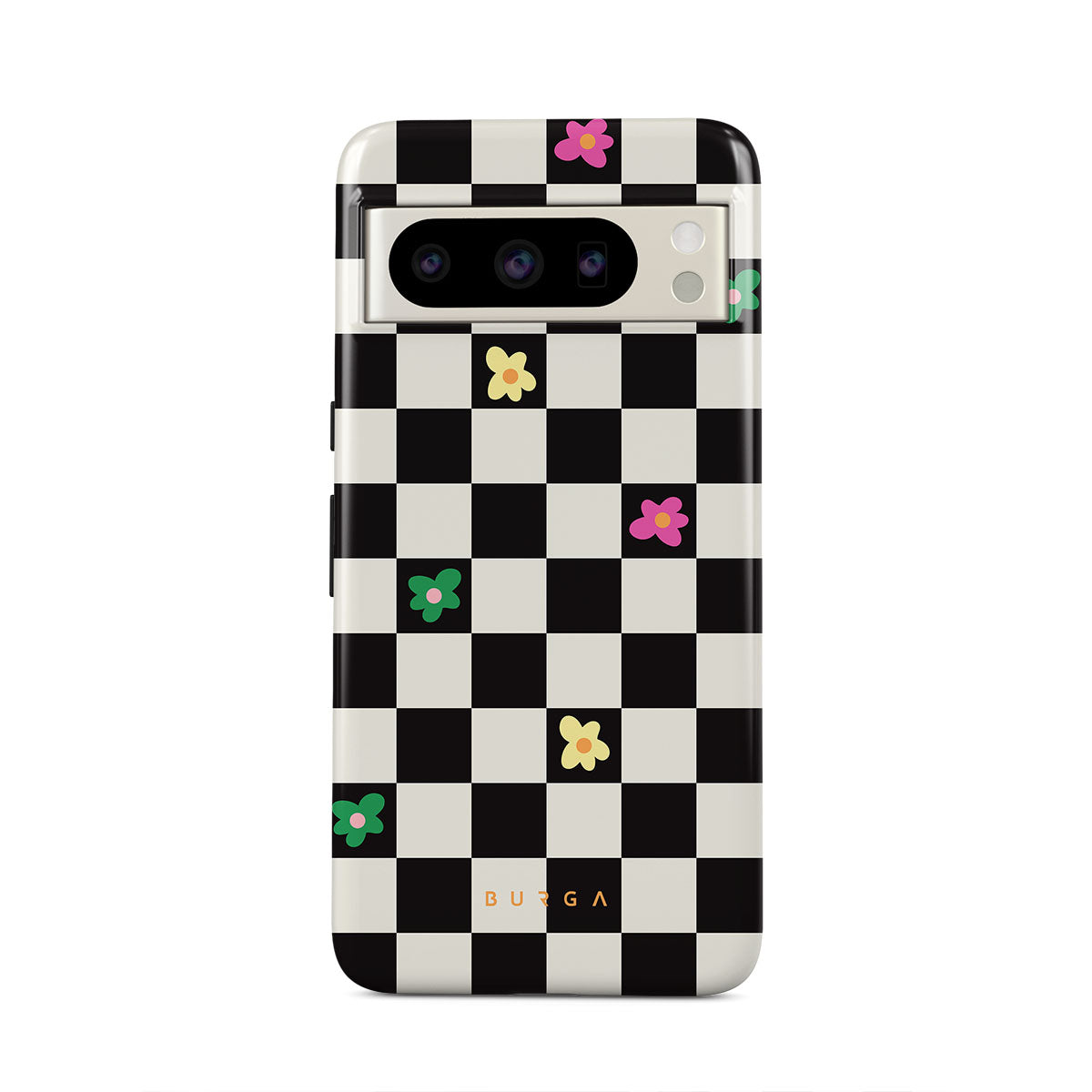 Take time to relax with our Lunch Break - Google Pixel 8 Pro phone case. The playful addition of colorful retro flowers to the classical black and white checkered pattern will add that extra pop of color. It will bring that much-needed *oomph* to your phone. With this playful design, you can keep your phone cute and protected!