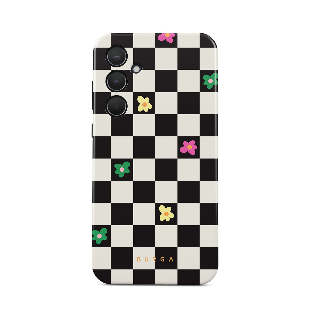 Take time to relax with our Lunch Break - Samsung Galaxy A35 phone case. The playful addition of colorful retro flowers to the classical black and white checkered pattern will add that extra pop of color. It will bring that much-needed *oomph* to your phone. With this playful design, you can keep your phone cute and protected!