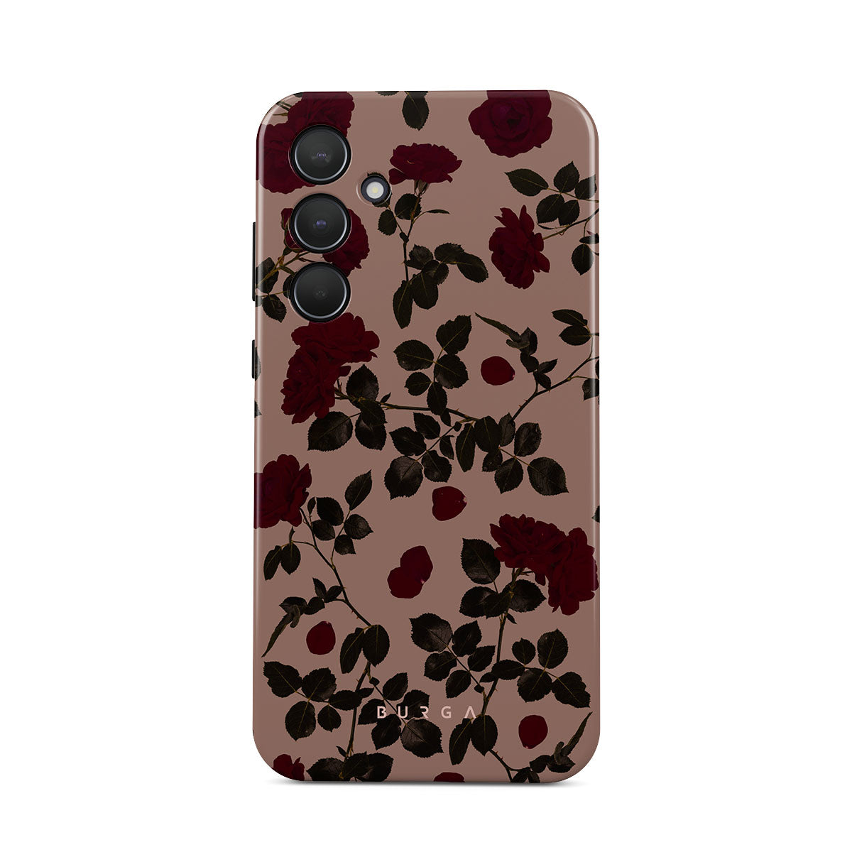Live out loud as the Main Character with this elegantly bold design that promises a new daily adventure. With deep, rich roses against a pink background, this Samsung Galaxy A35 phone case design is crafted for the muse in you.