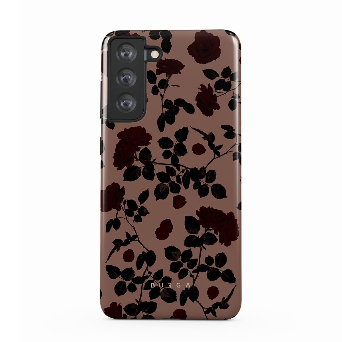 Live out loud as the Main Character with this elegantly bold design that promises a new daily adventure. With deep, rich roses against a pink background, this Samsung Galaxy S21 FE phone case design is crafted for the muse in you.
