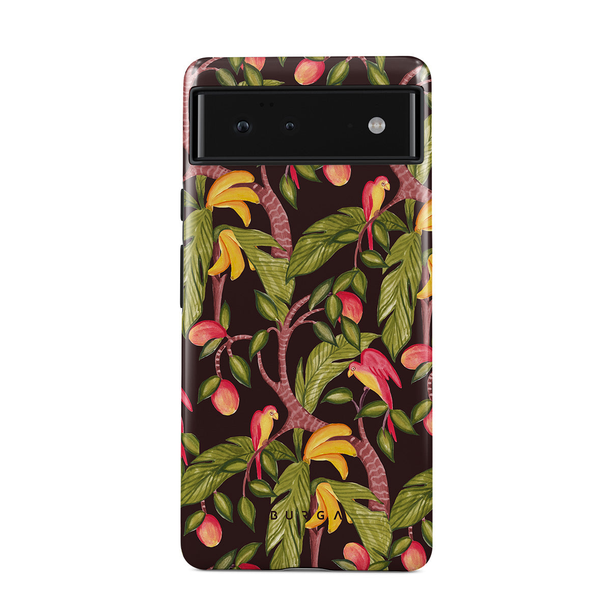 A lush botanical fantasy where ripe mangoes hang like forbidden fruit. Deep greens and juicy oranges pull you into a tropical escape. If this Google Pixel 6 phone case design had a voice, it would purr.