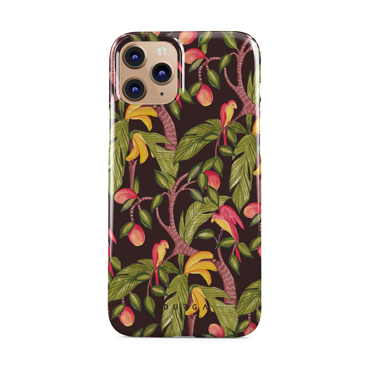 A lush botanical fantasy where ripe mangoes hang like forbidden fruit. Deep greens and juicy oranges pull you into a tropical escape. If this iPhone 11 Pro Max phone case design had a voice, it would purr.