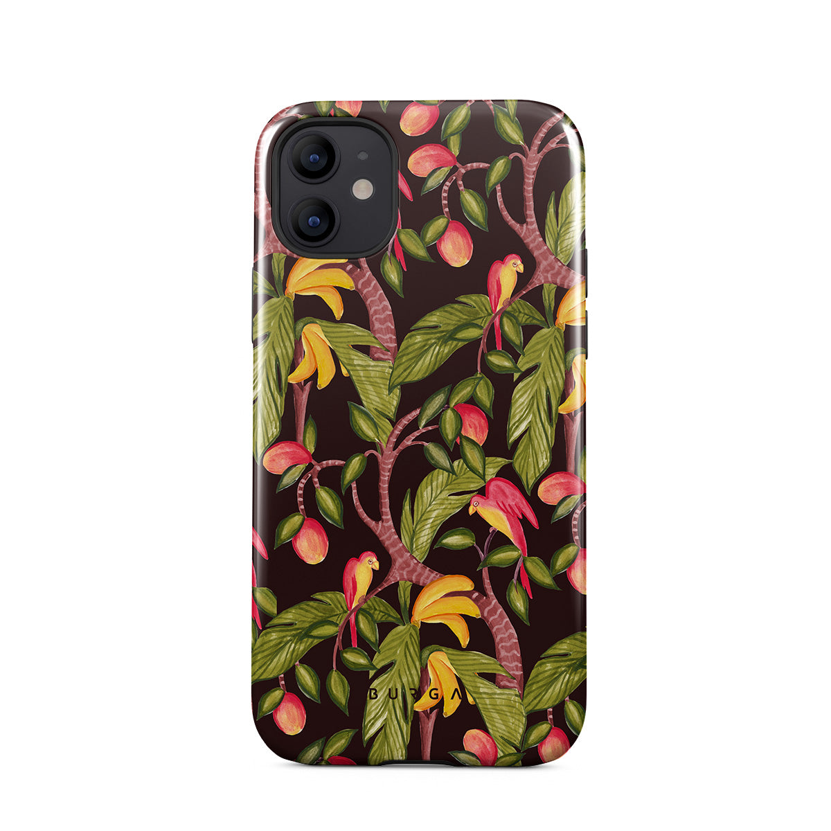 A lush botanical fantasy where ripe mangoes hang like forbidden fruit. Deep greens and juicy oranges pull you into a tropical escape. If this iPhone 12 phone case design had a voice, it would purr.