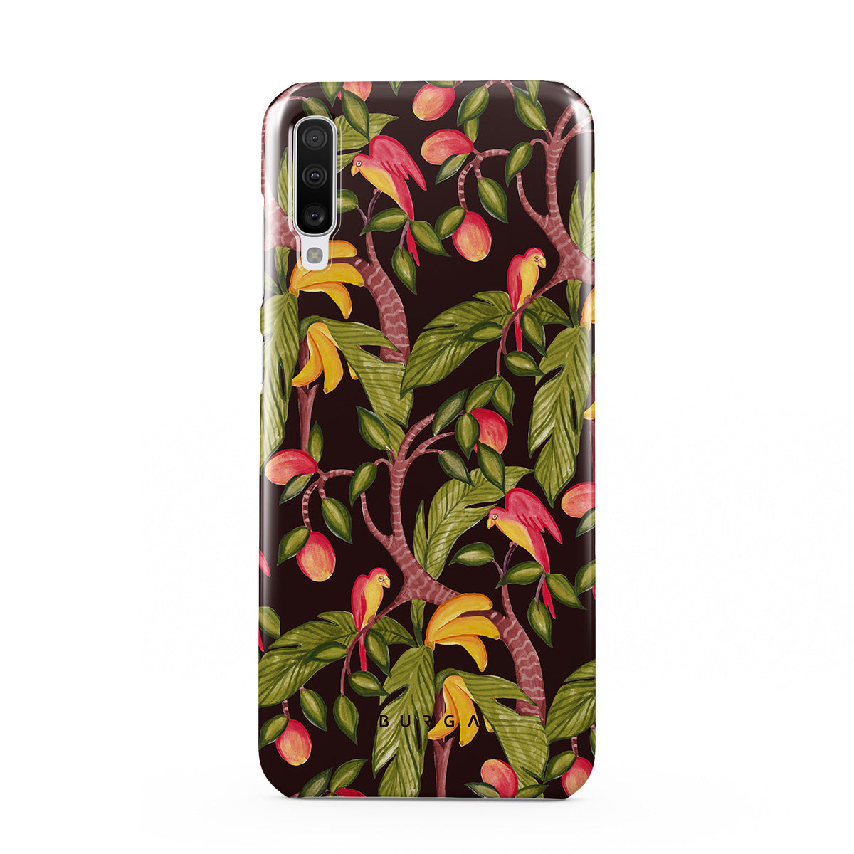 A lush botanical fantasy where ripe mangoes hang like forbidden fruit. Deep greens and juicy oranges pull you into a tropical escape. If this Samsung Galaxy A70 phone case design had a voice, it would purr.